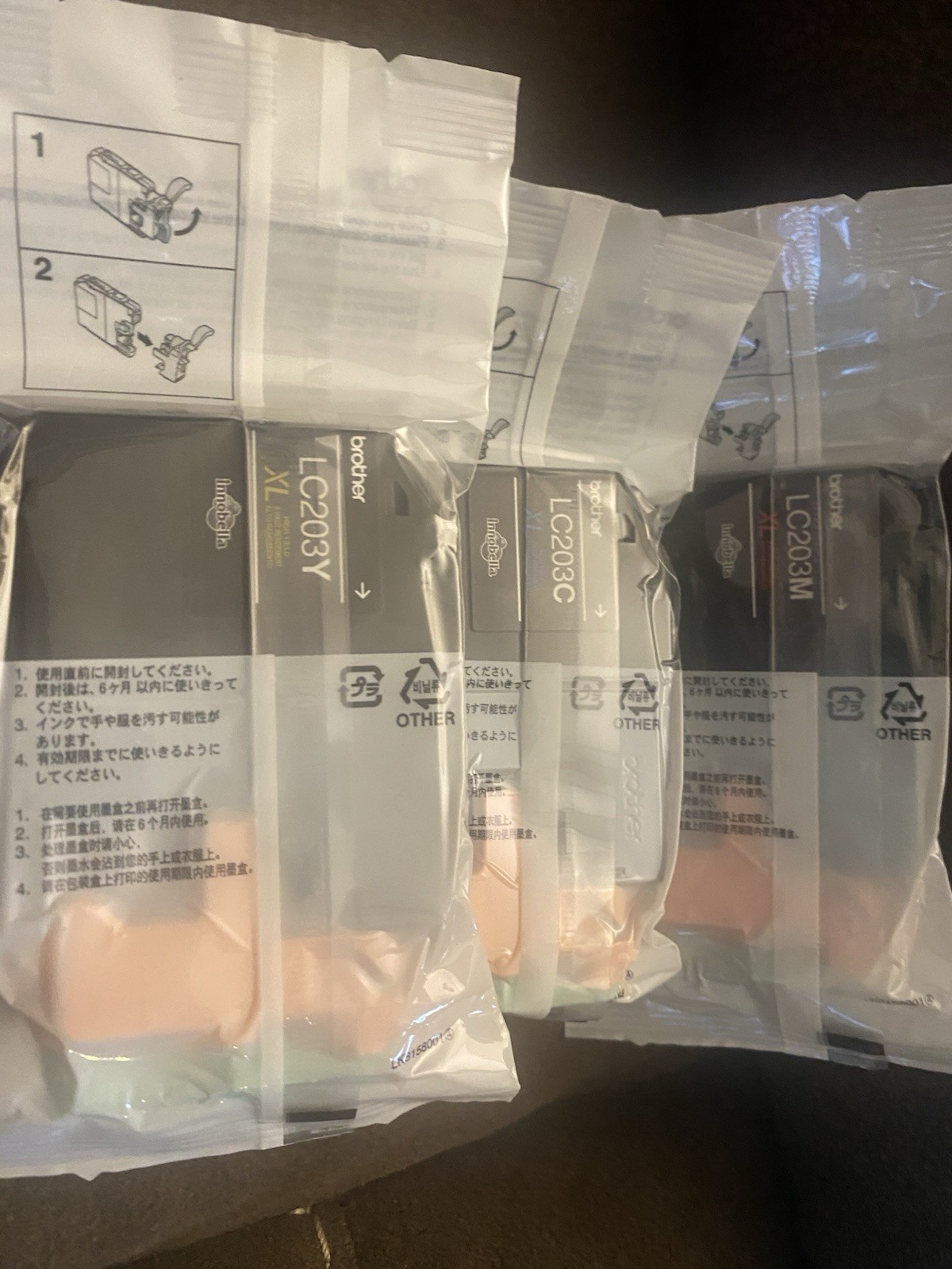 - New Genuine Brother LC203XL Cyan Magenta Yellow 3PK Ink Cartridges NO RETAIL BOX