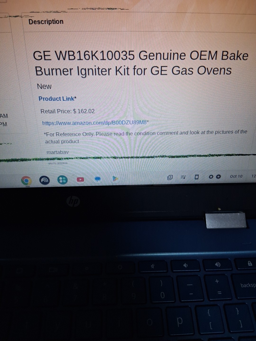 - New Genuine OEM GE General Electric Oven Range Bake Burner WB16K10035