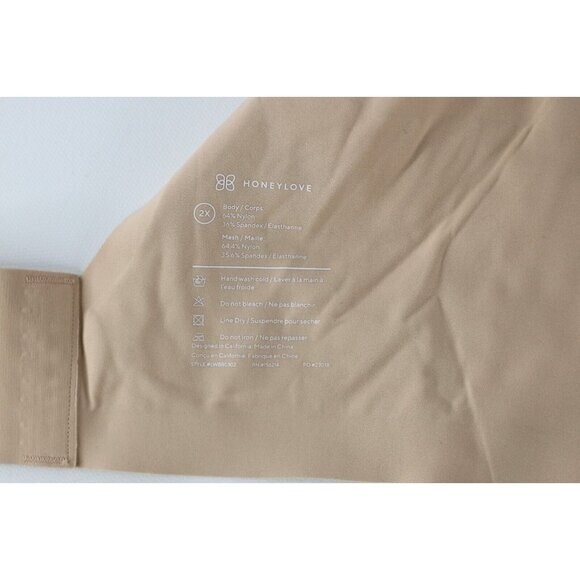- New Honeylove Womens Size 2X Crossover Wire Free Shapewear Bra Nude Beige Lace