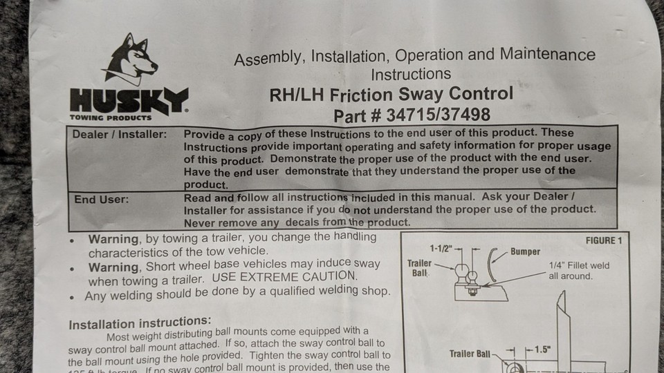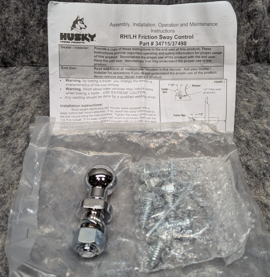- NEW HUSKY RH/LH FRICTION SWAY CONTROL HARDWARE BALL W/ CLIPS SCREWS 34715/37498