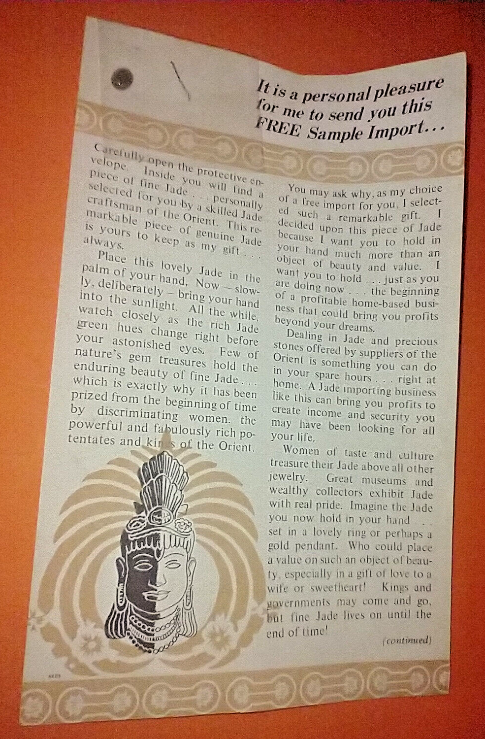 - NEW!! JADE SAMPLE-ABOUT .25", FREE SHIPPING US ONLY!!