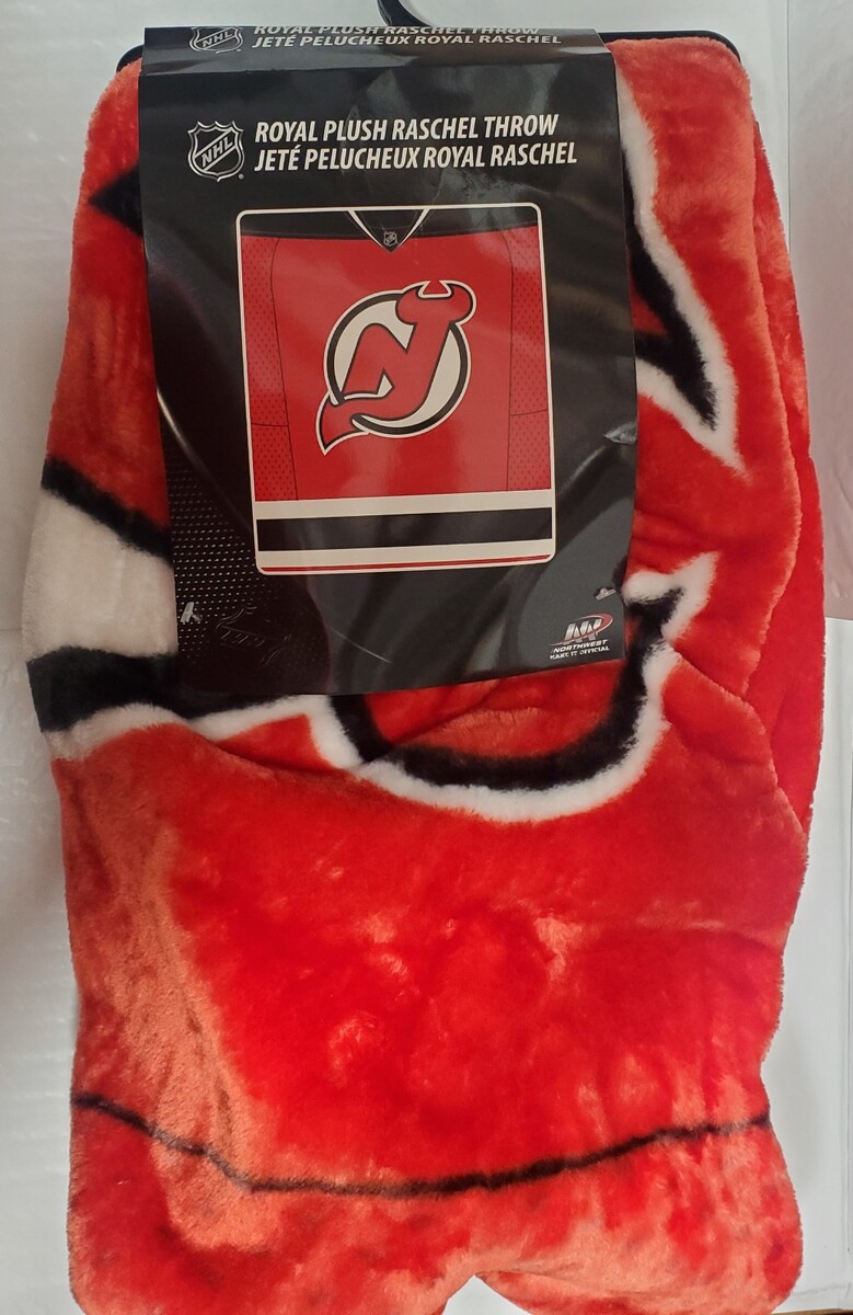 This is a 50" by 60" plush New Jersey Devils Jersey design raschel throw blanket.