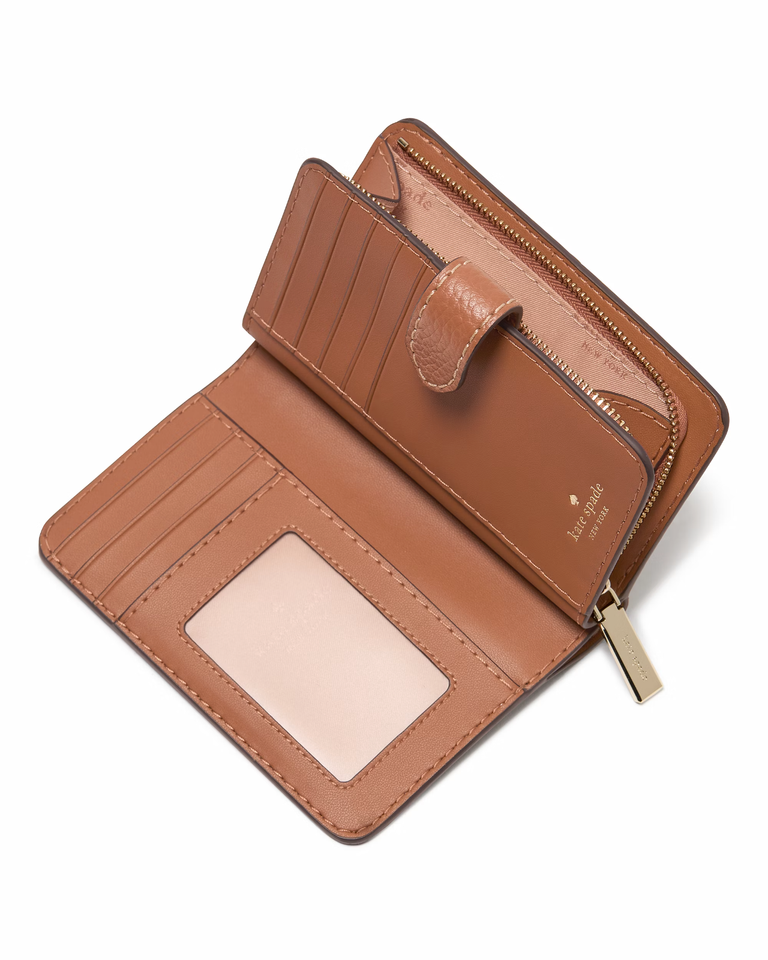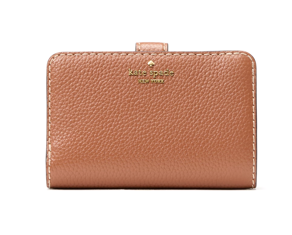 - New Kate Spade Lena Medium Compact Bifold Wallet Pebble Leather Warm Gingerbread