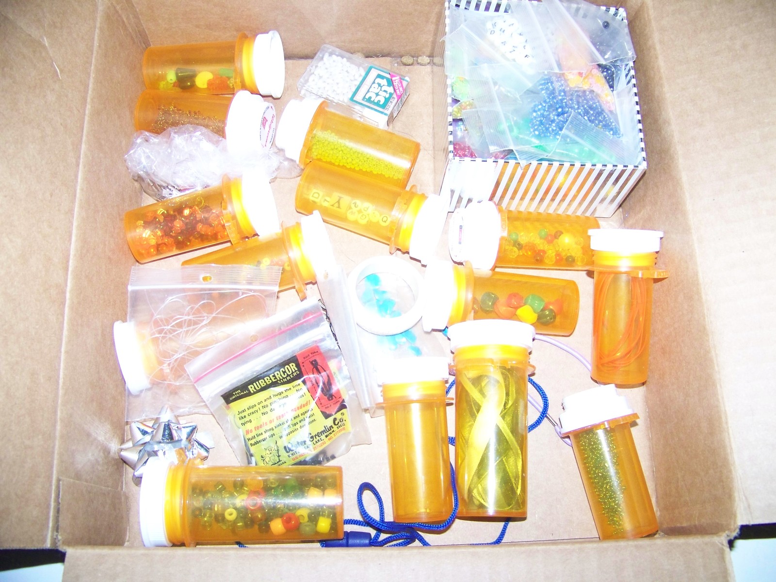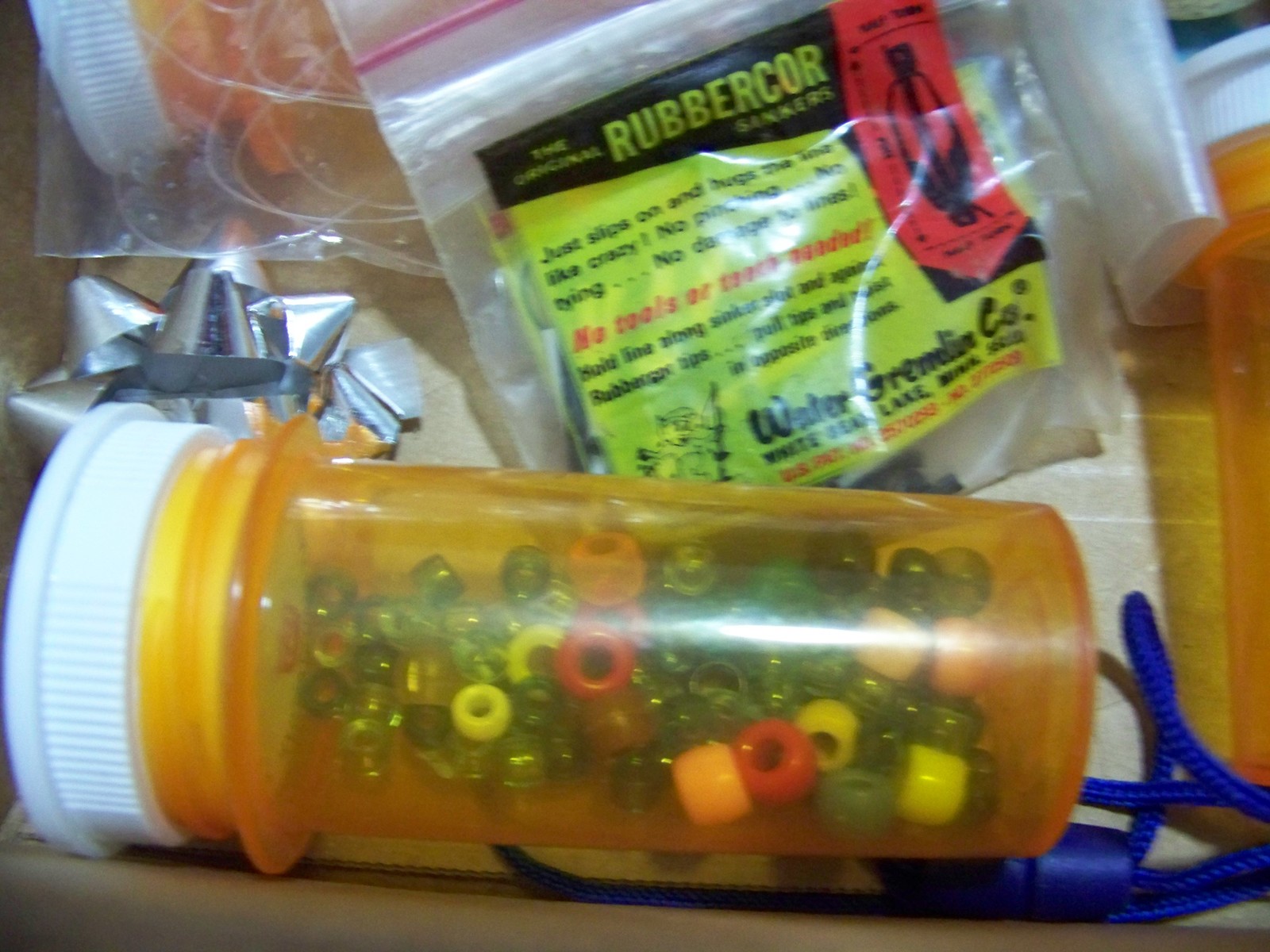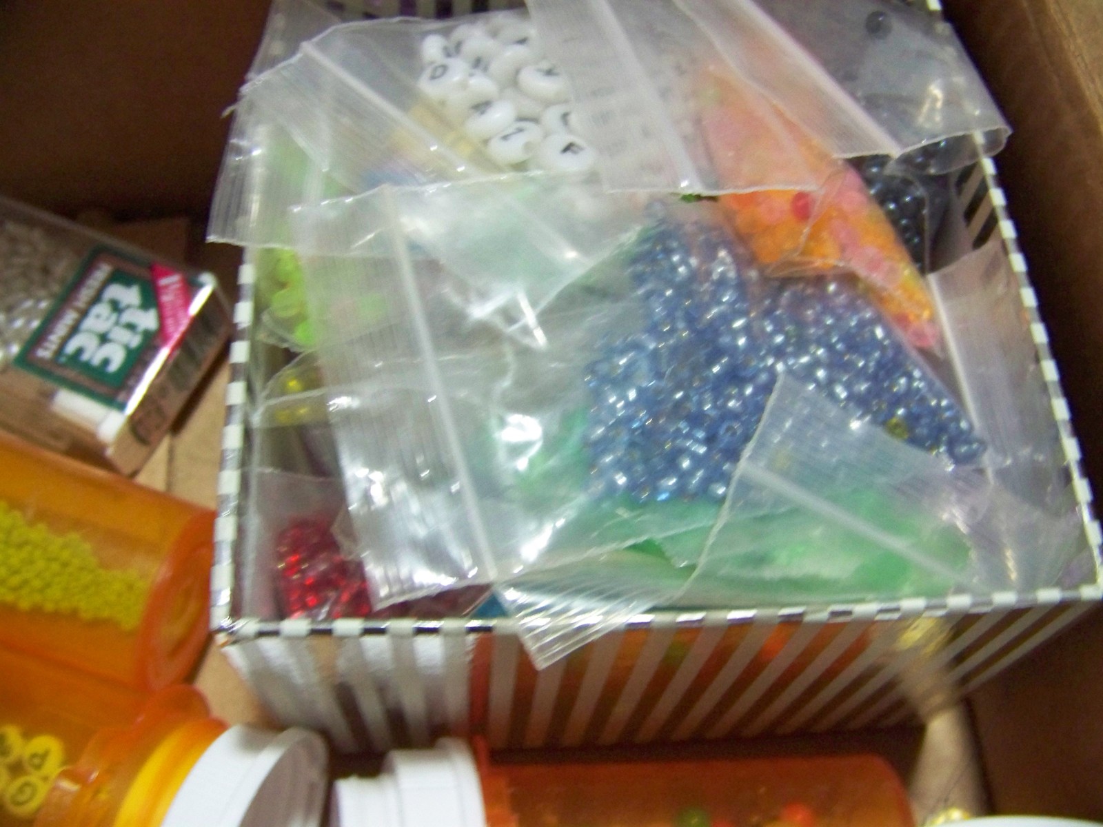 12.5 OZ. WITH BOX, BOX ABOUT 4.25" SQUARE AND 3" TALL. BEADS MAY BE PLASTIC AND OR GLASS. ALL SOLD AS-IS NO RETURN.