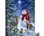 Here is a new Holiday/winter led wall print called Heaven And Nature Sing , is large size and measures 18x24 and is Fully Illuminated LED Art. This beautiful piece features a joyful snowman, standing tall in a peaceful snowy landscape, wrapped up in a large hat and cozy scarf. As he stands, he is surrounded by the friendly company of bunnies, a fox, and a deer, all adding to the picturesque winter scene. Adding to the enchantment of this artwork is a bright star shining in the background, illuminating the entire piece with a soft glow. Whether you're looking to add some holiday cheer to your home or simply want to enjoy a beautiful winter scene, includes