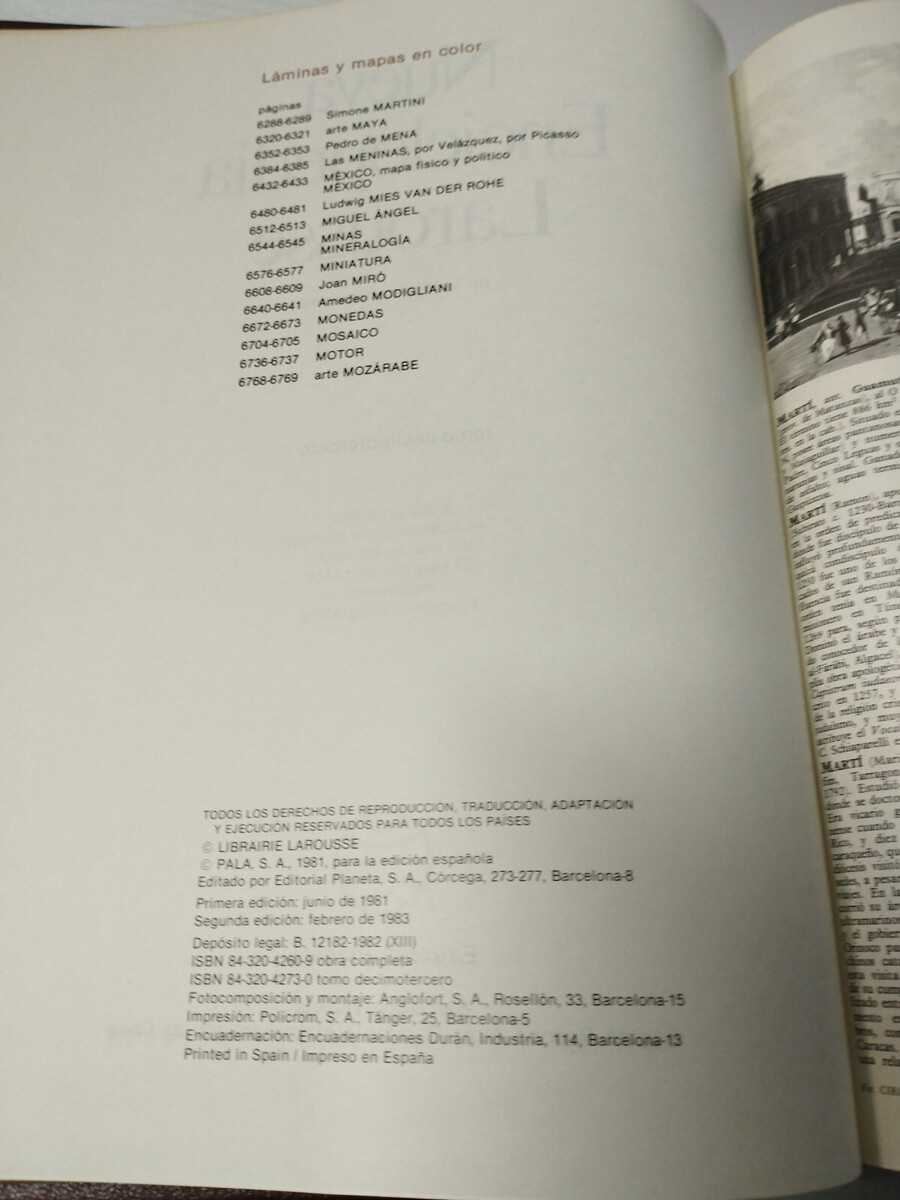 New Larousse Encyclopedia Volume Marti-Mudd Volume 13 Planeta 1985 - Spanish BOOK