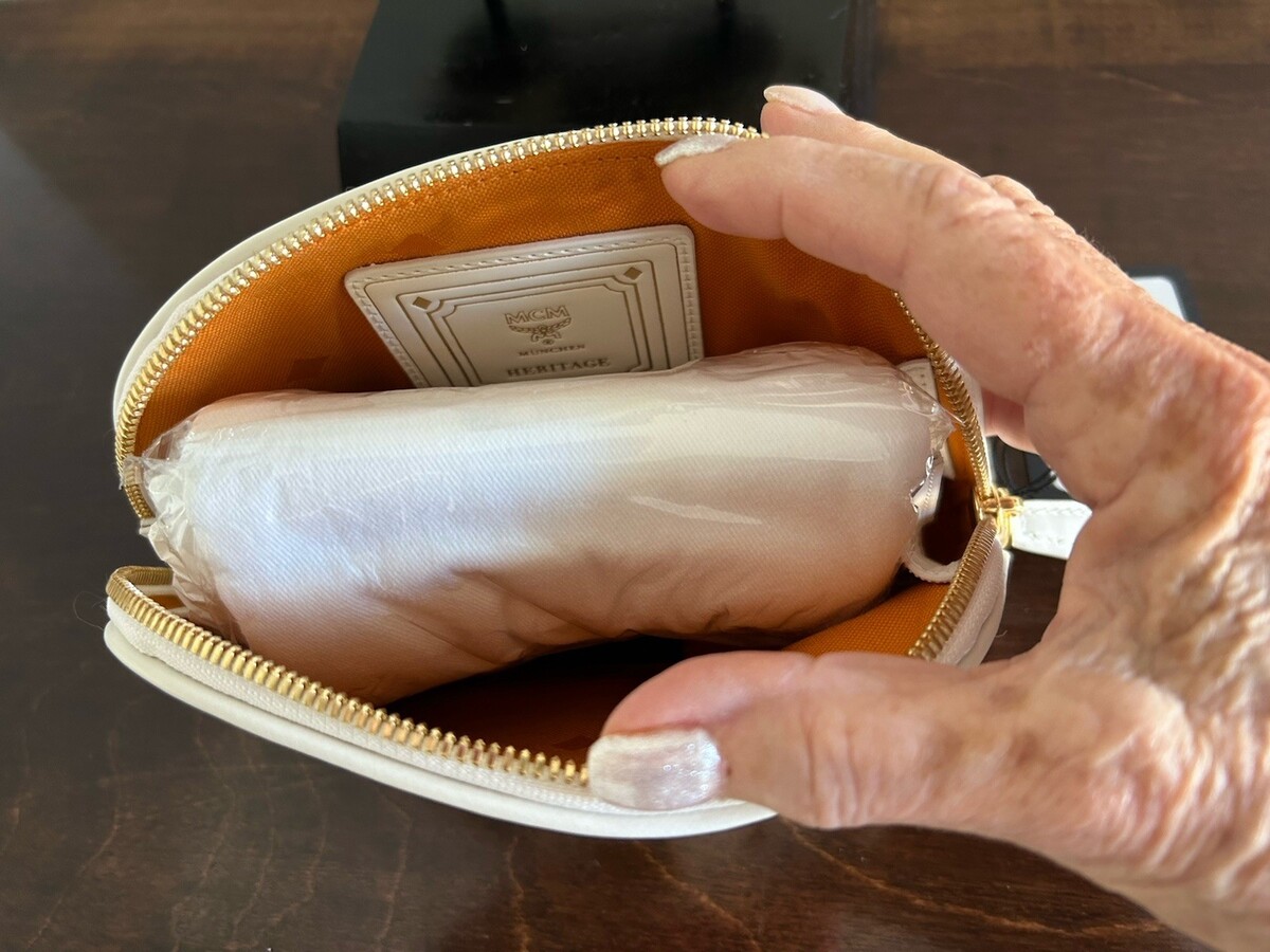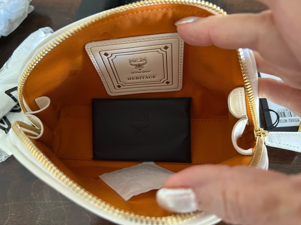 New MCM Black/White Leather Clutch/Cosmetic Bag 7.5” x5.5”