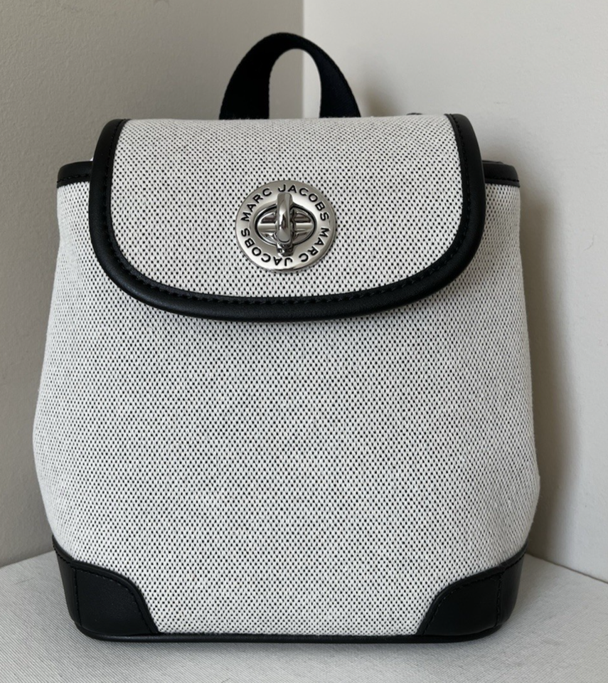New Marc Jacobs Convertible Canvas Backpack Bag Beige /Black