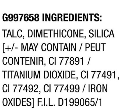 TALC, DIMETHICONE, SILICA, MAY CONTAIN: CI 77891 / TITANIUM DIOXIDE, CI 77491, CI 77492, CI 77499 / IRON OXIDES