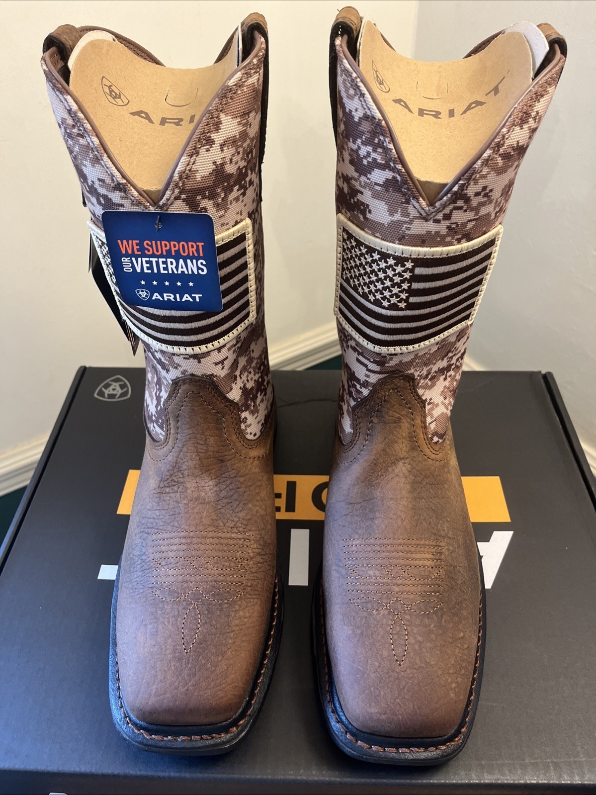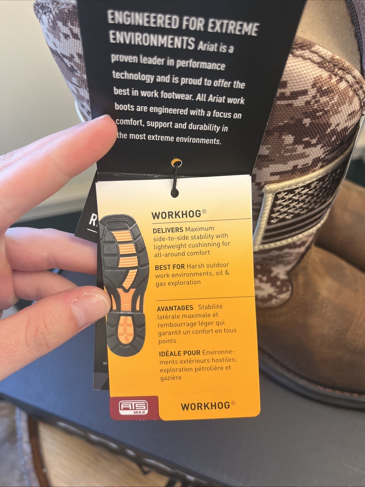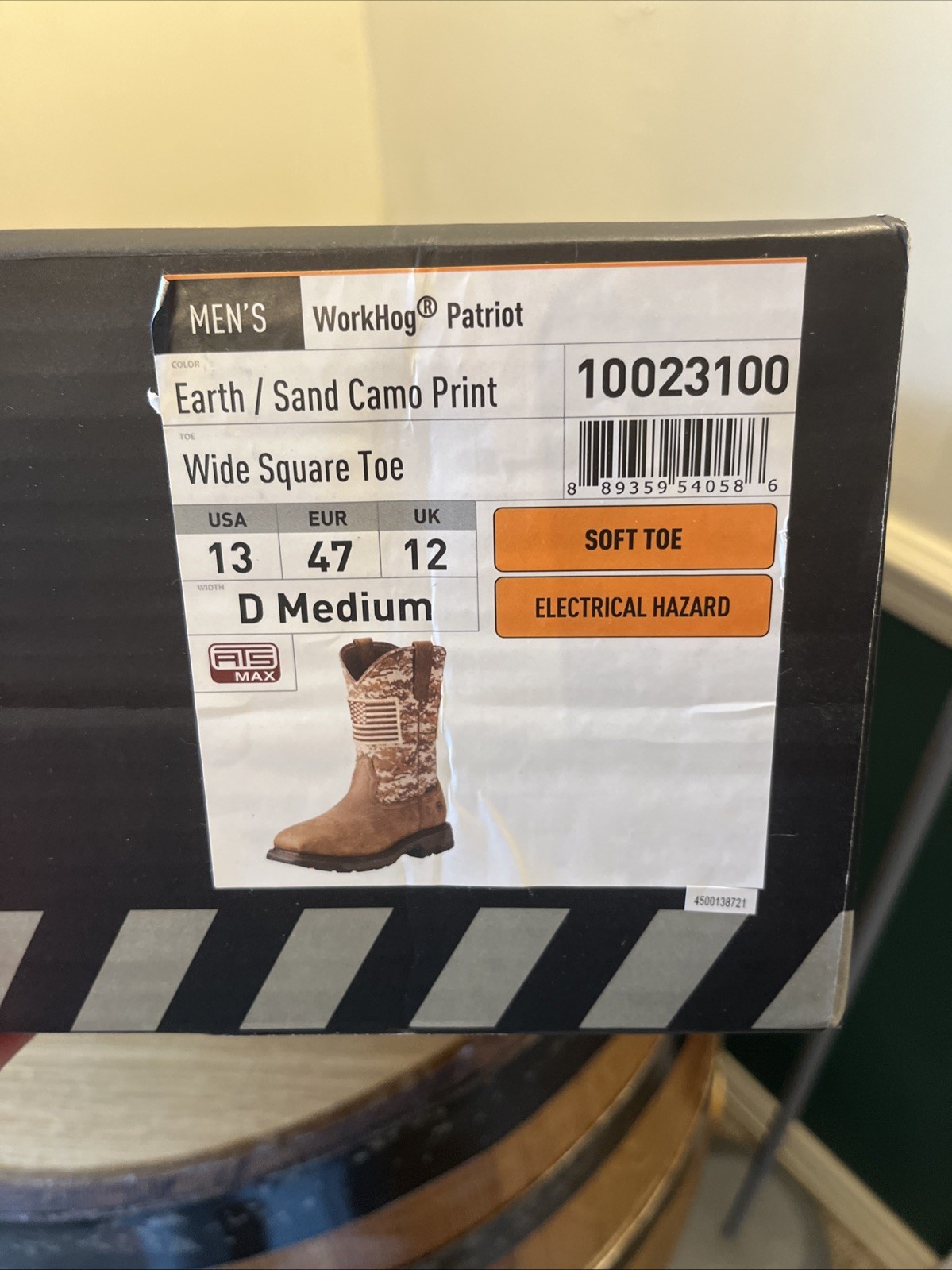 - New Mens ARIAT WORKHOG PATRIOT Brown Leather Cowboy Work Boot, 13.0 D