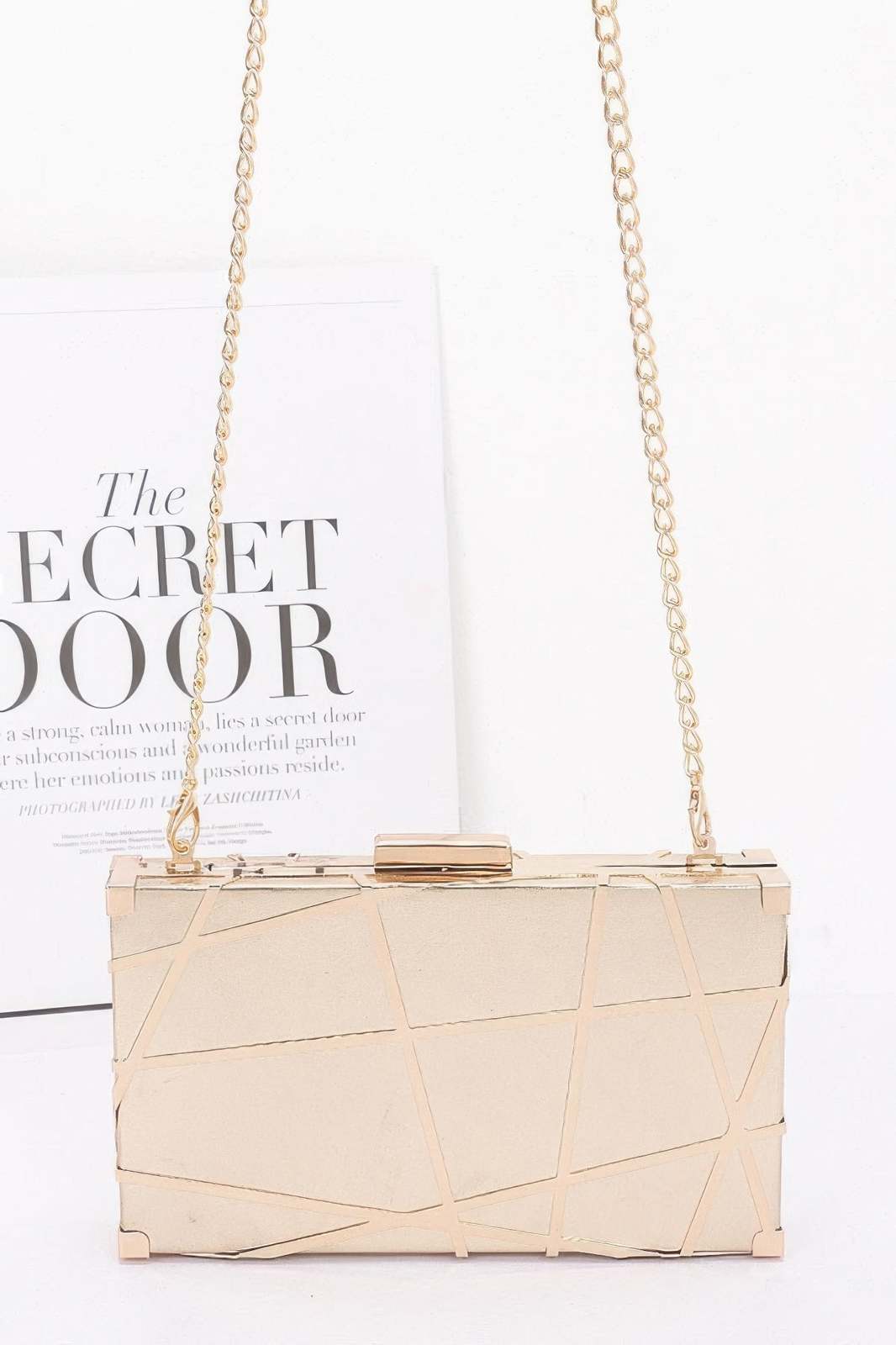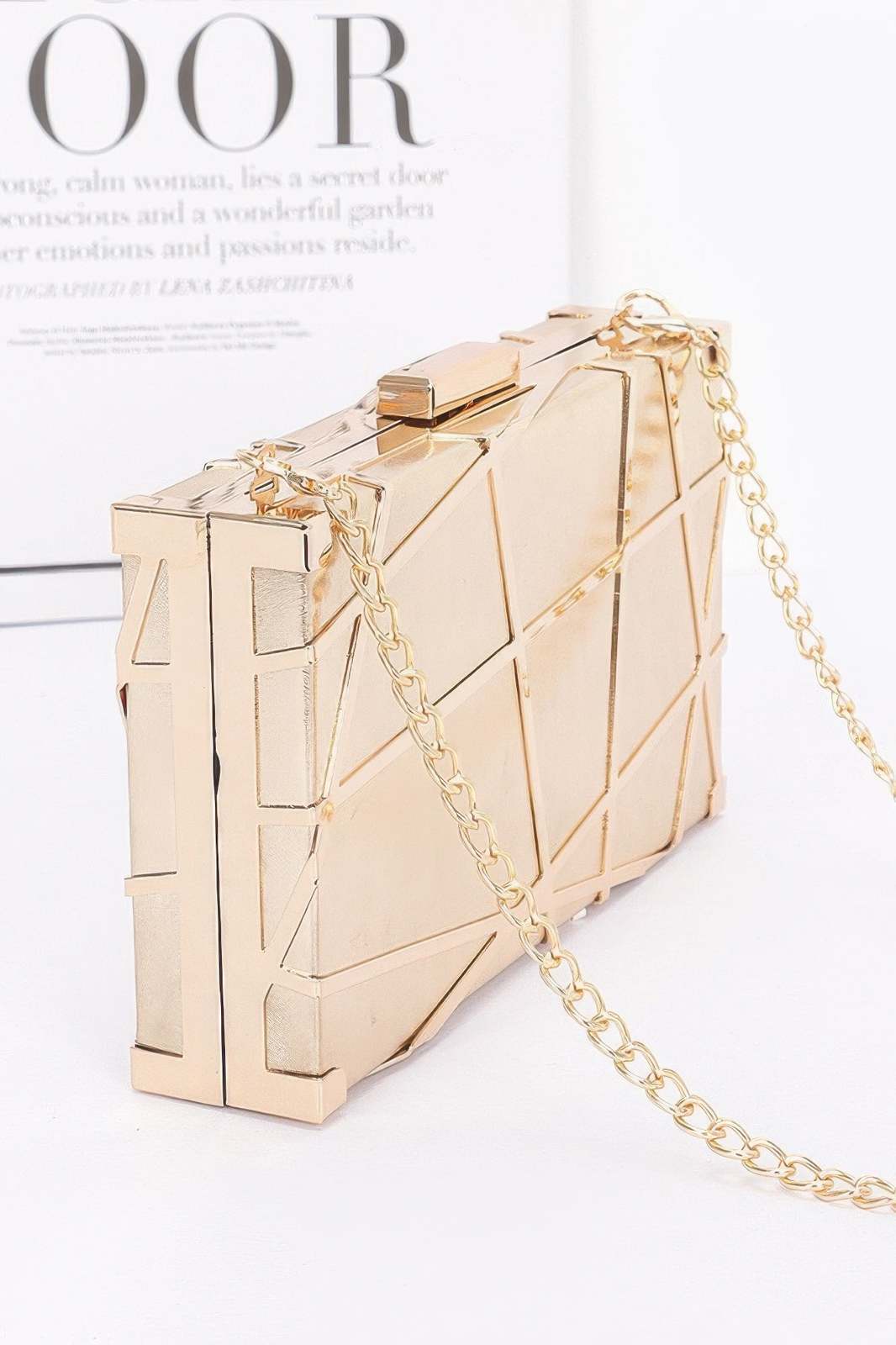 Add a touch of elegance to your collection with the Metal Case Metallic Clutch, a stunning bag that seamlessly combines sophistication and style. With its sleek metallic finish and chic chain strap, this clutch is the perfect accessory for those who want to make a lasting impression.