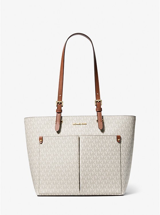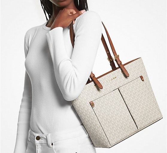 - New Michael Kors Jet Set Travel Medium Double Pocket Logo Tote Vanilla /Dust bag