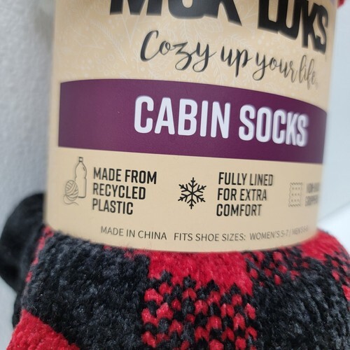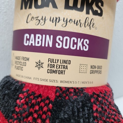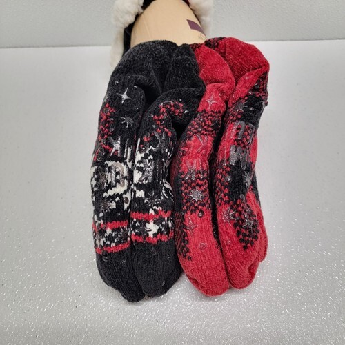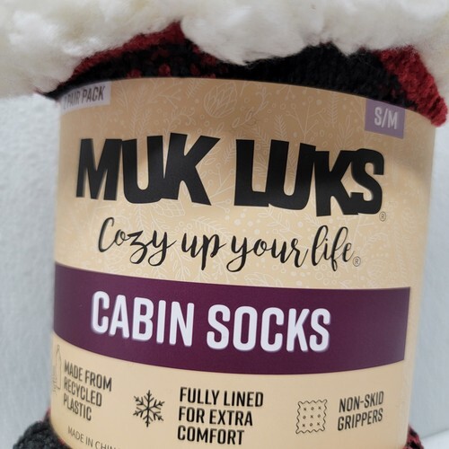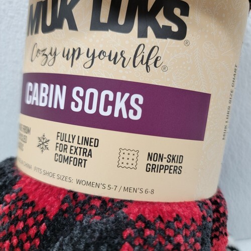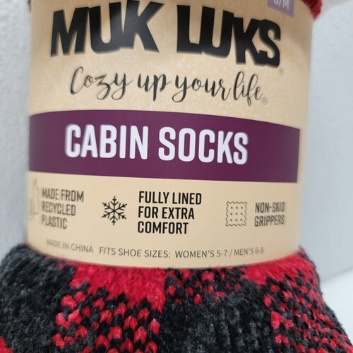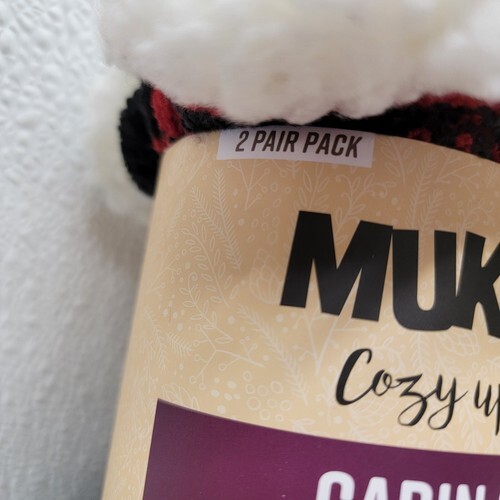 - New Muk Luks Cabin Slipper Socks Black & Red S/M (5-7) 2 Pack Non Skid Adult