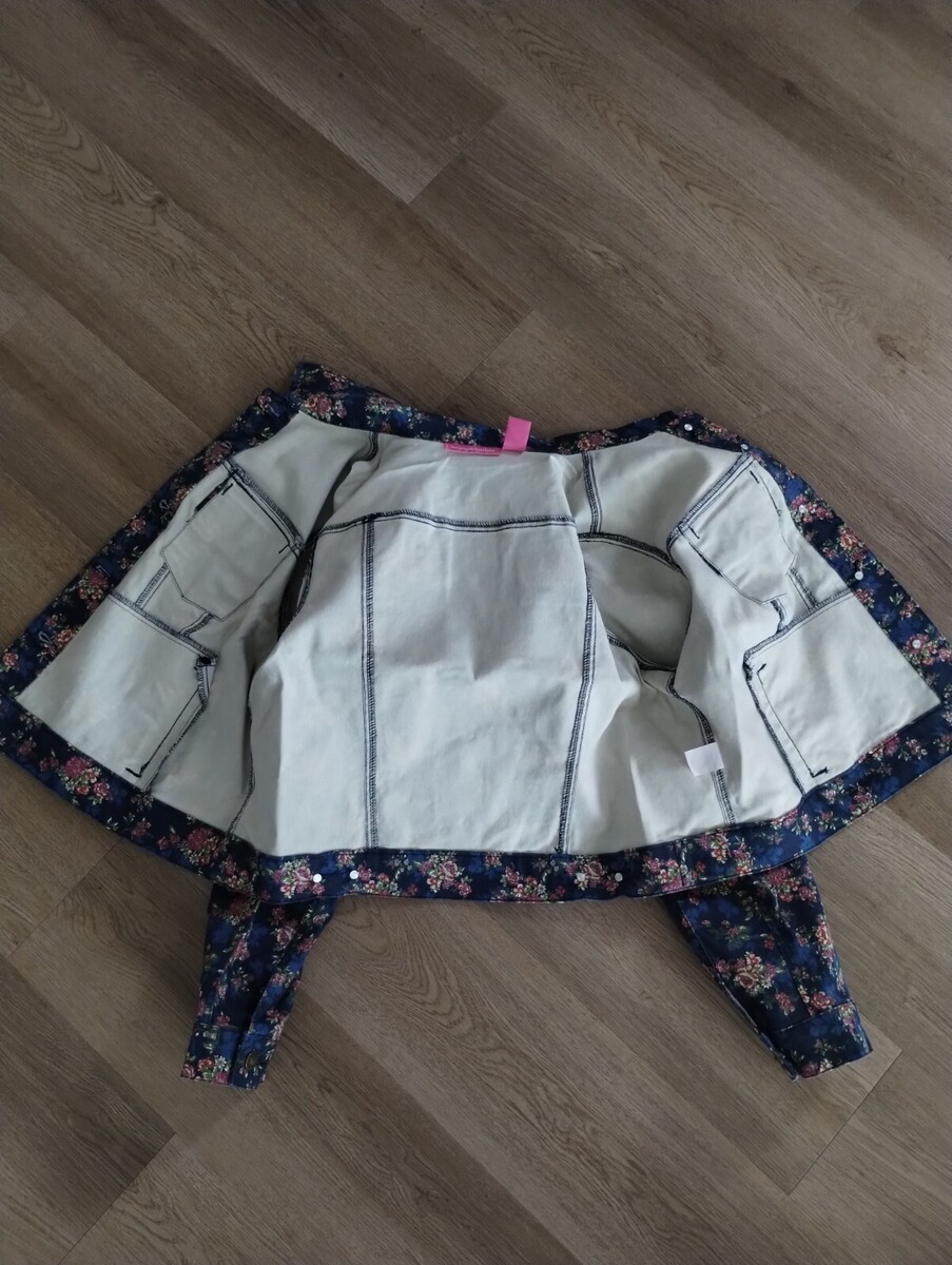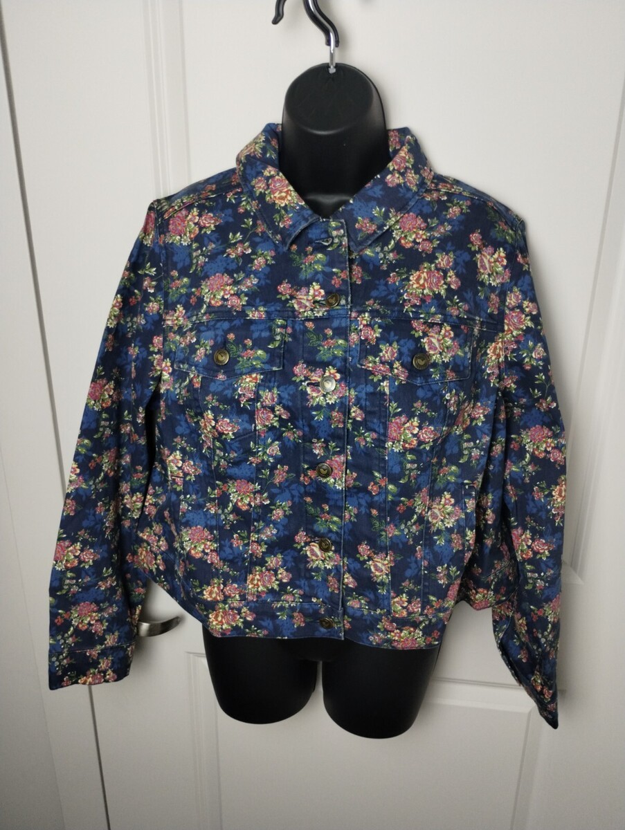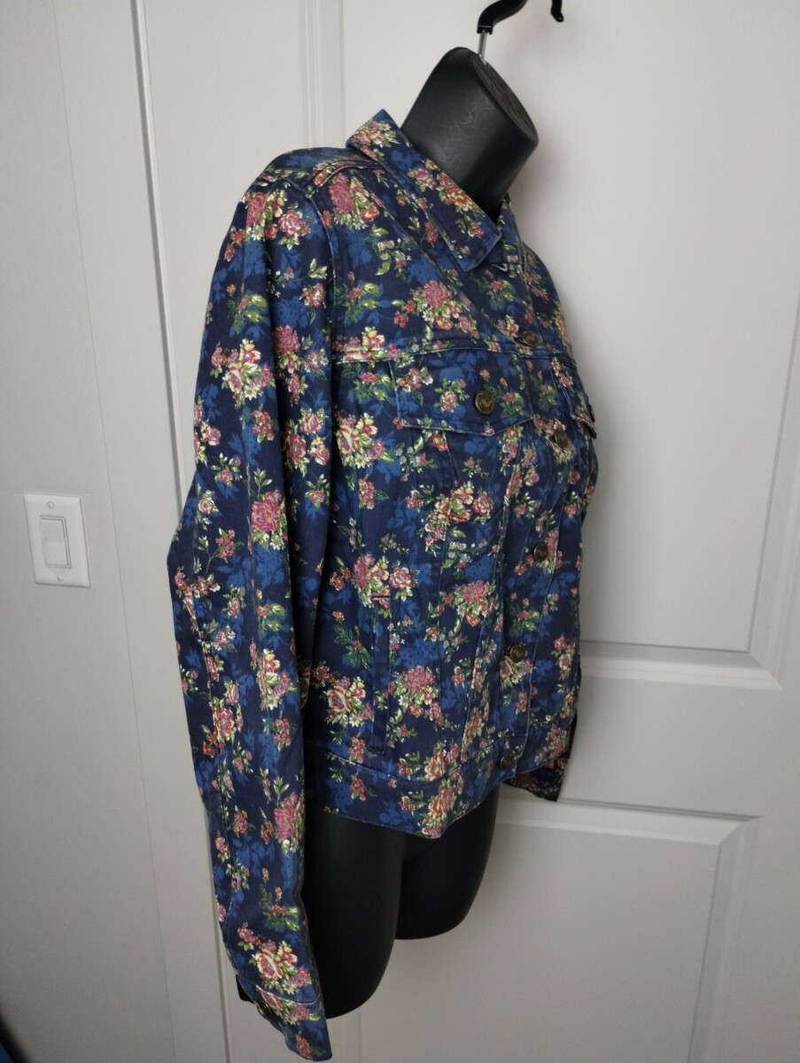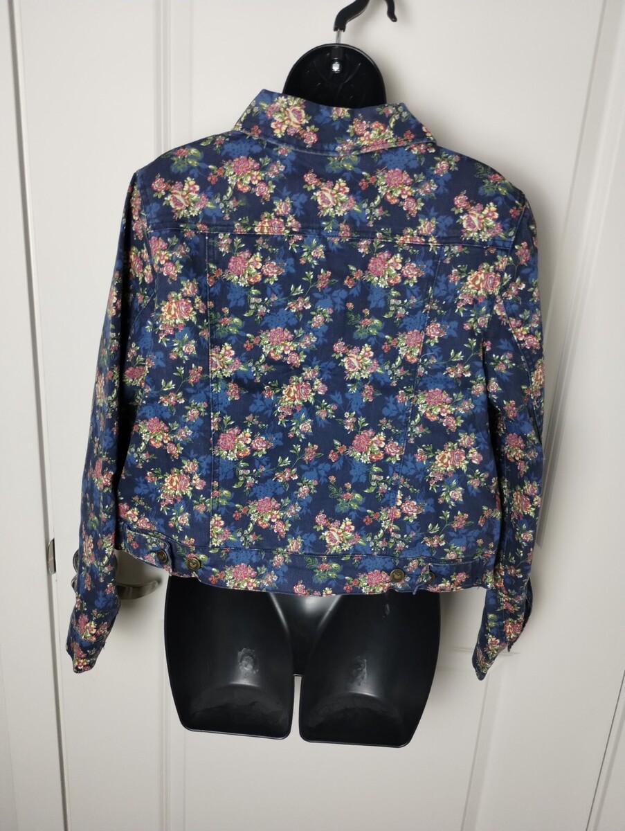- New NWOT Woman Within Button Up Jacket Womens Sz 12W Blue Floral Denim Stretch