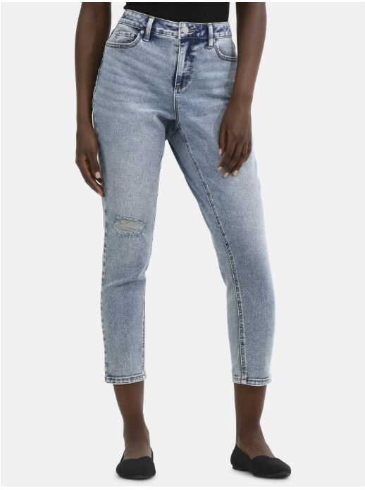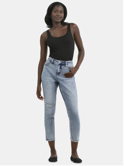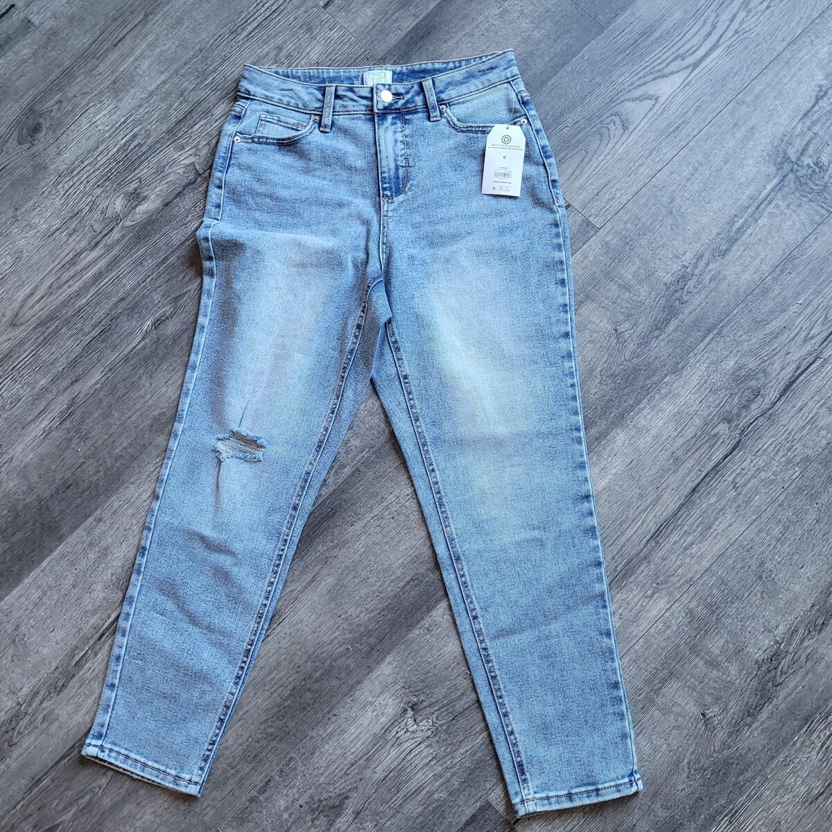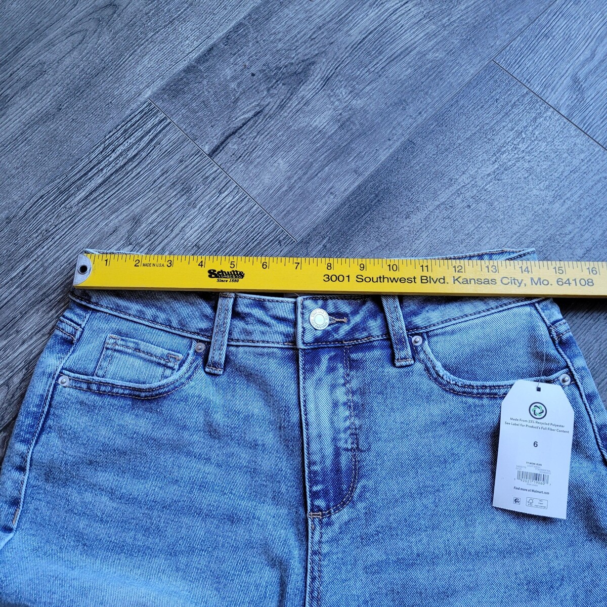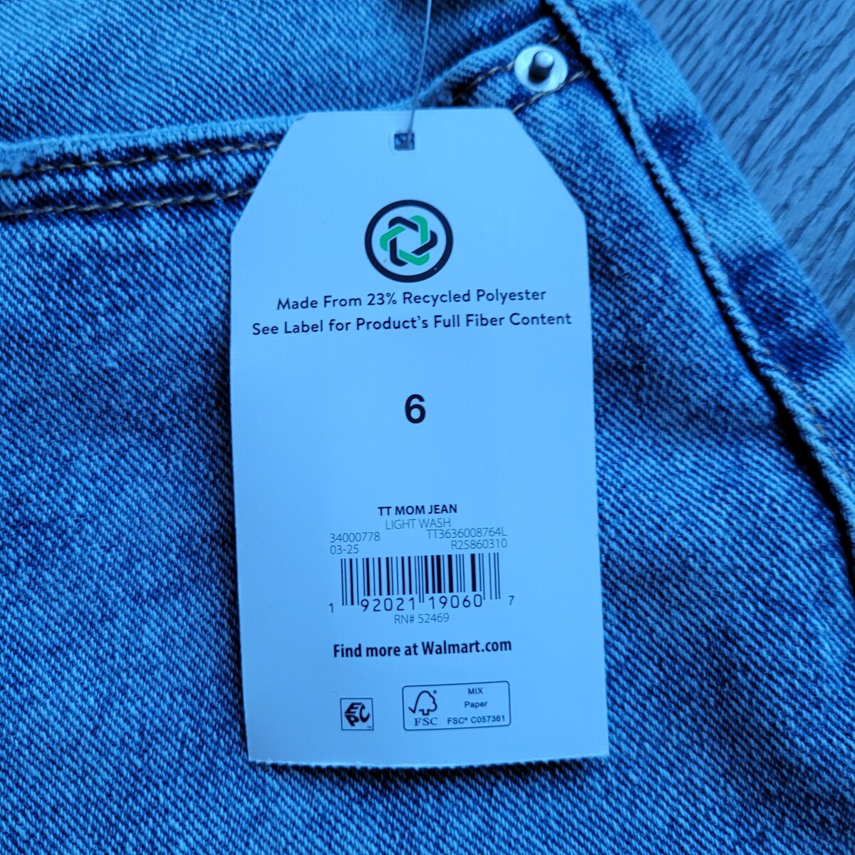 - New NWT Time and Tru Women s High Rise Mom Cotton Blend Stretch Blue Jeans Sz 6