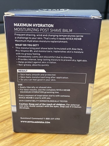 - NEW Nivea Men MOISTURIZING Post Shave BALM 3.3 oz Maximum Hydration KG JD