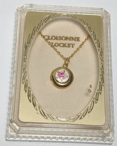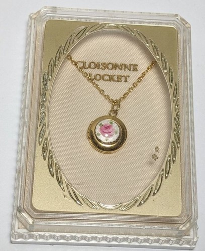 New Old Stock Cloisonne Locket Necklace 18” Long