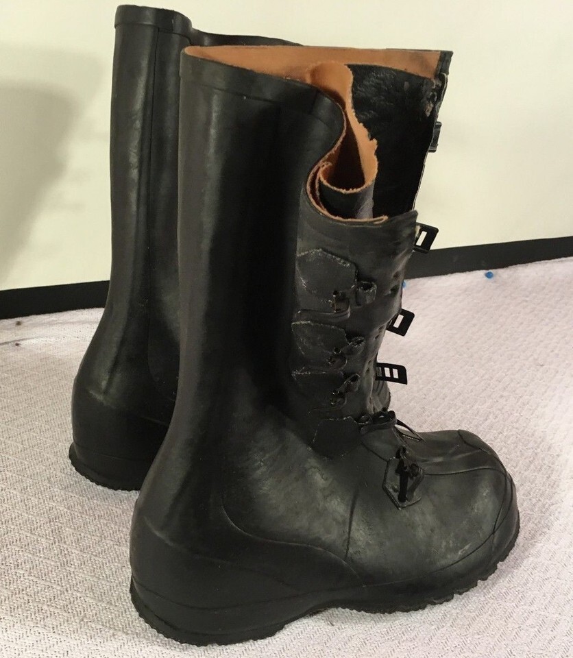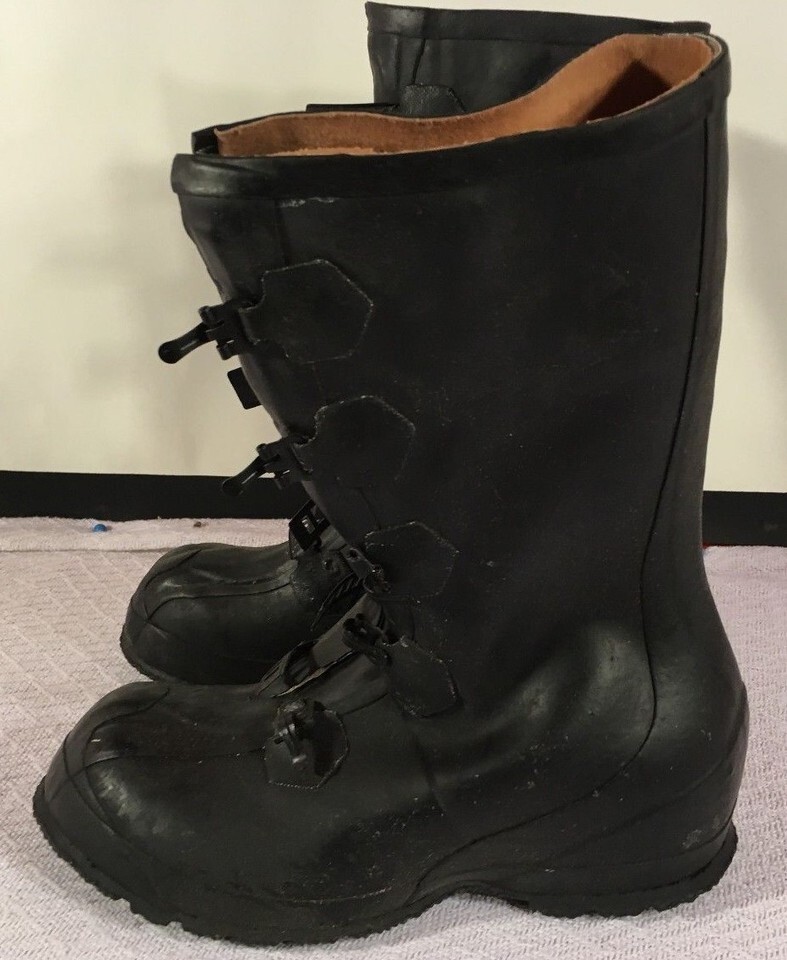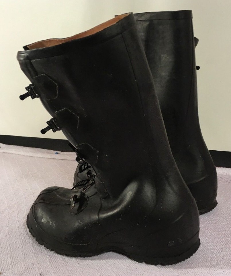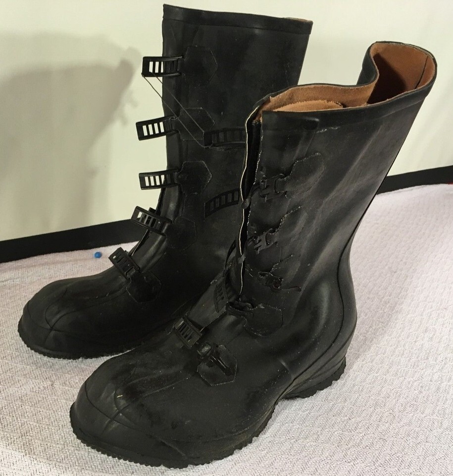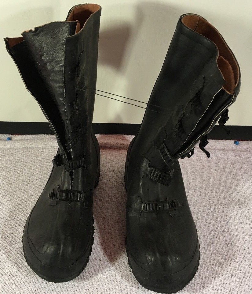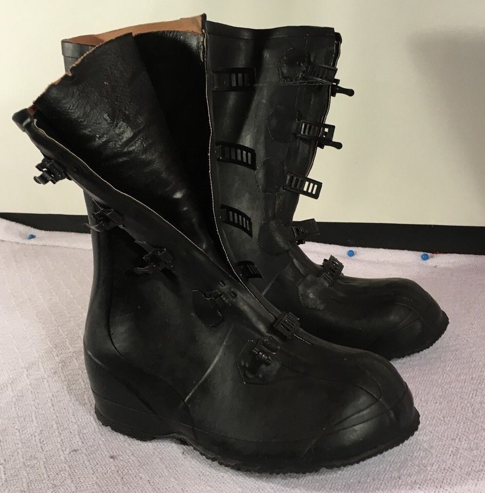 - NEW OLD STOCK XCLUSIVE SHOE CO MILITARY RUBBER 5 BUCKLE MID CALF OVER BOOTS