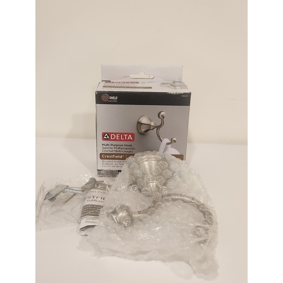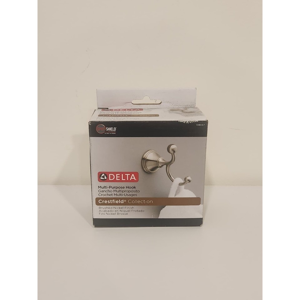 - New Open Box Delta Crestfield Double Towel Hook Brushed Nickel Bath Hardware