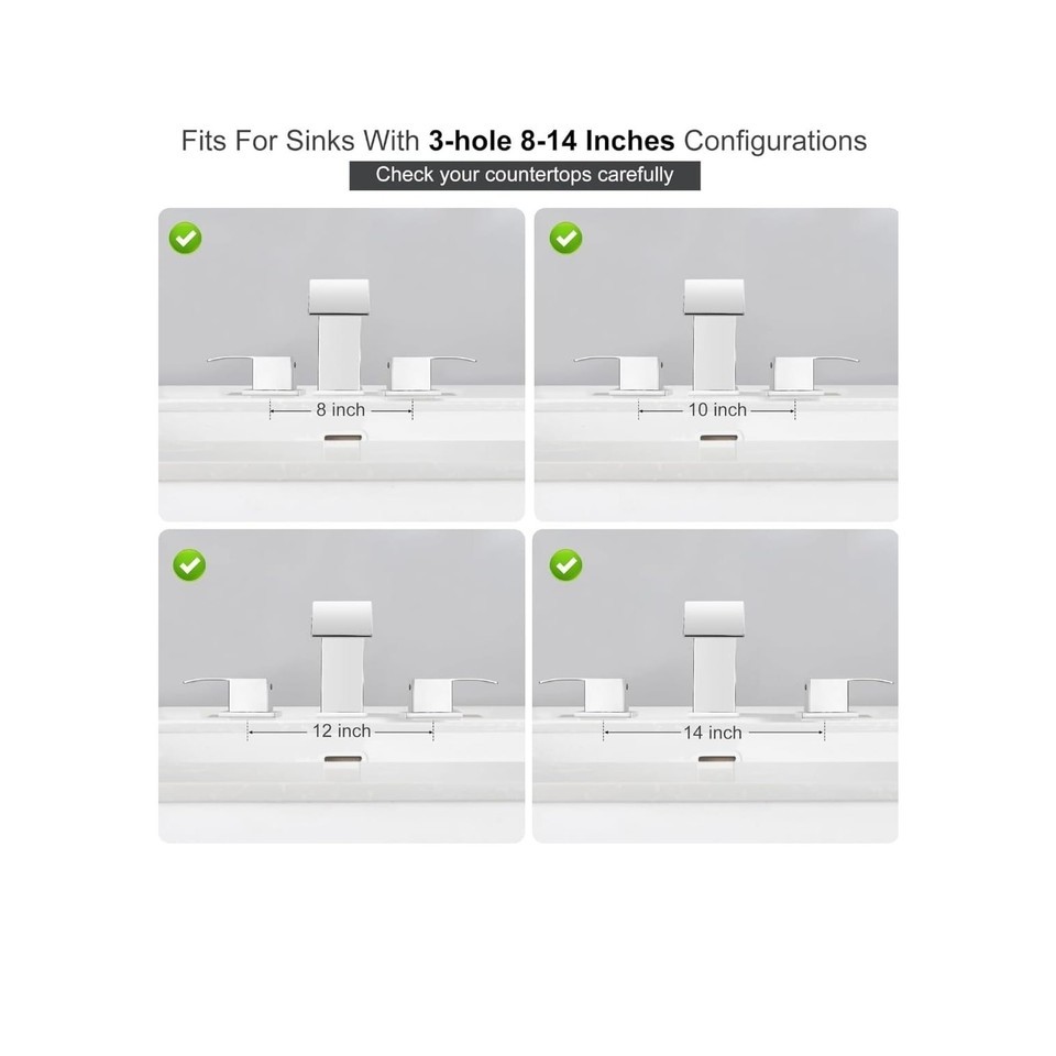 Fits 3-hole, 8-inch widespread sink configurations