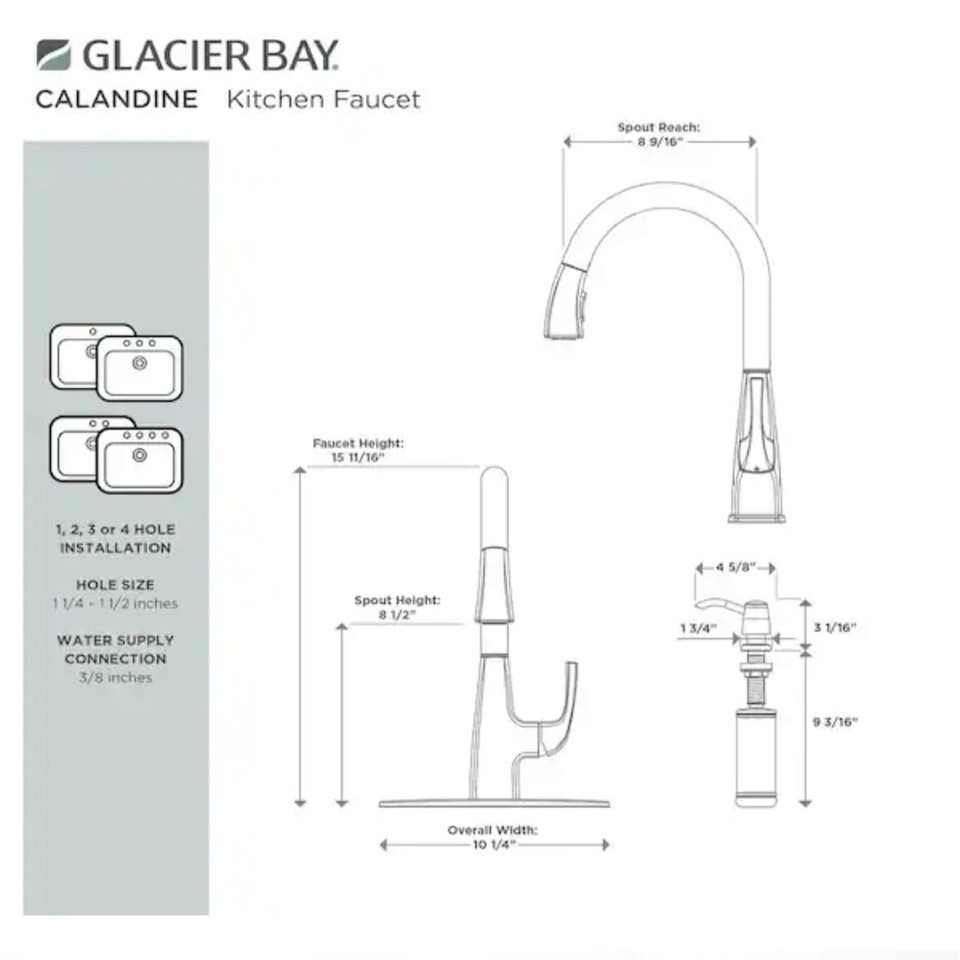 Upgrade your kitchen with this stylish and functional Glacier Bay Calandine pull-down kitchen faucet! This faucet is new, open box, and ready to install, adding a touch of elegance to your sink.
