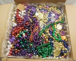 This is a box lot of various New Orleans Mardi Gras bead necklace strands. There are various colors, size and lengths. Included are 3 sealed bags. The box lot contains approximately 13+ pounds of beads.