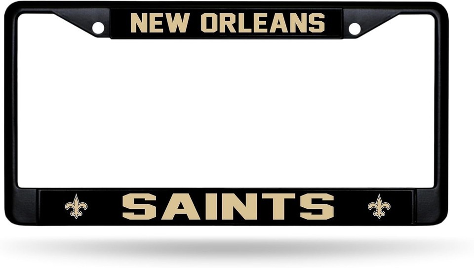 - New Orleans Saints 12" x 6" Auto Frame - Weather-Resistant Black Chrome Design