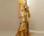 - New Party Floral Print Elegant Diagonal Collar Long Dress