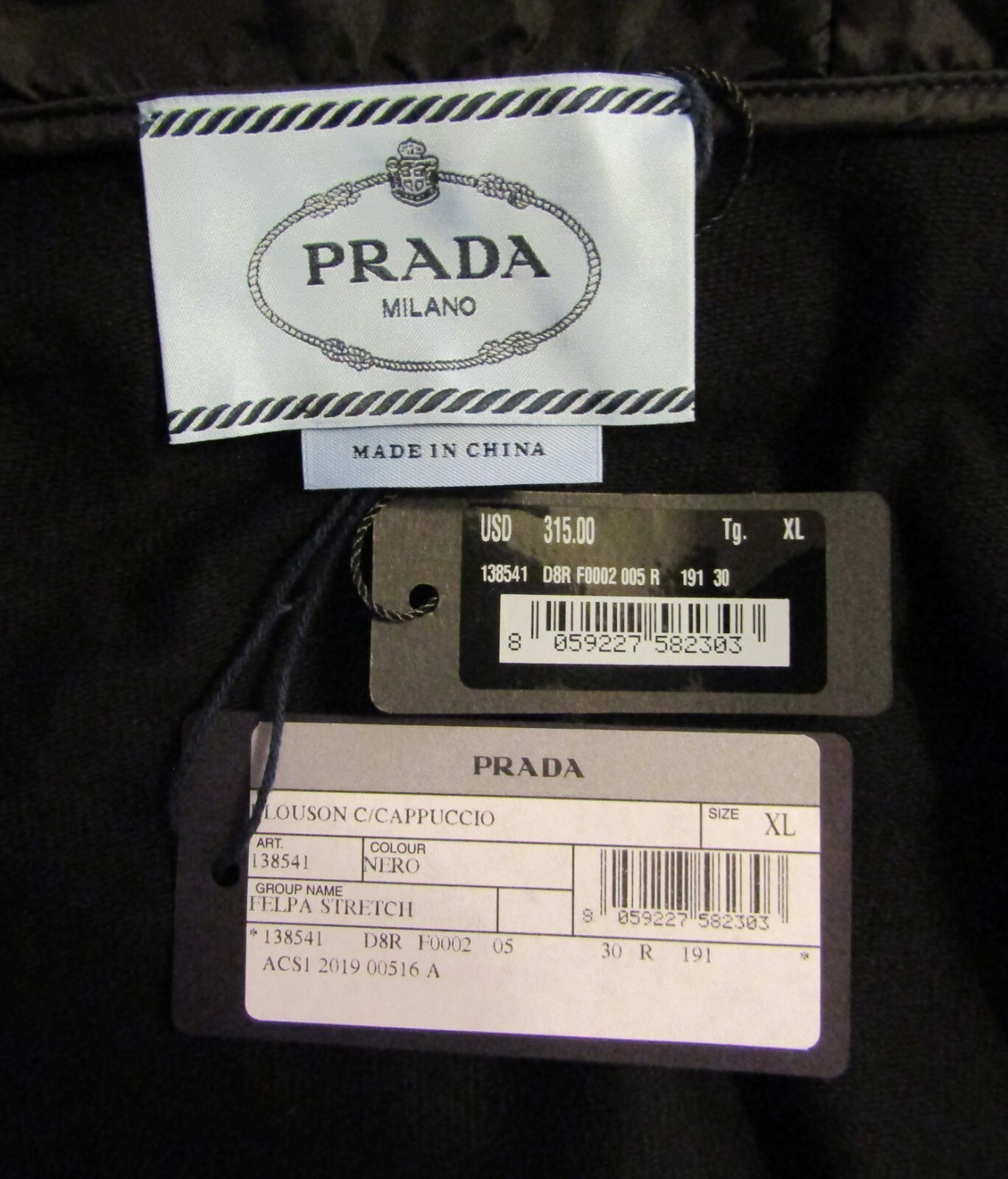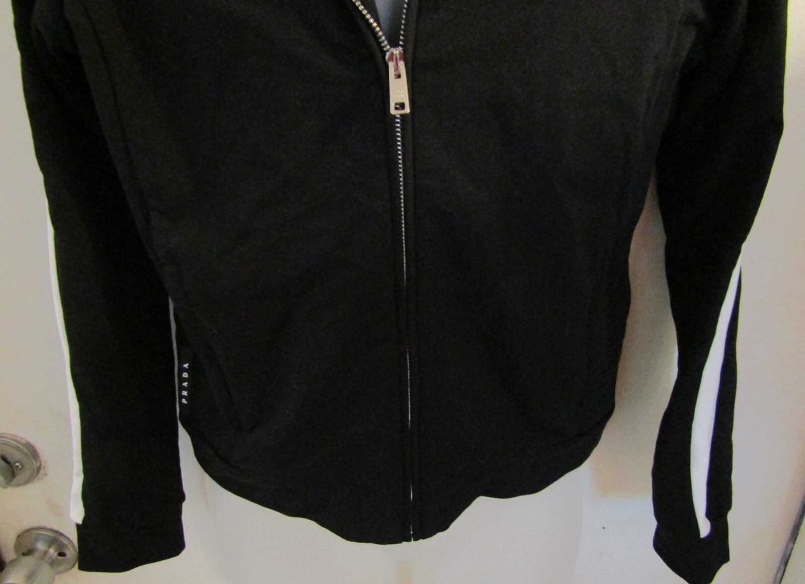 New Prada Black White Stripe Cotton Jersey Zip Front Felpa Blouson Hoodie Jacket