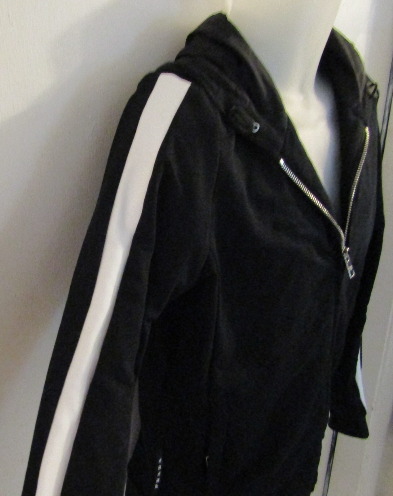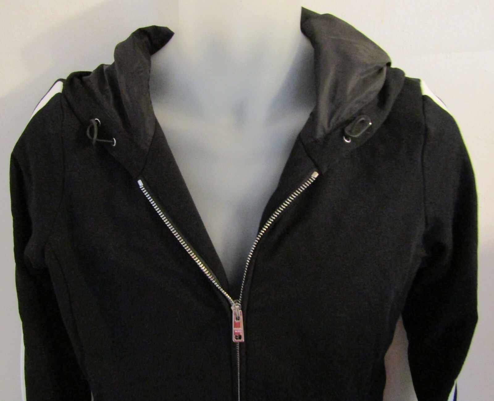 New Prada Black White Stripe Cotton Jersey Zip Front Felpa Blouson Hood Jacket