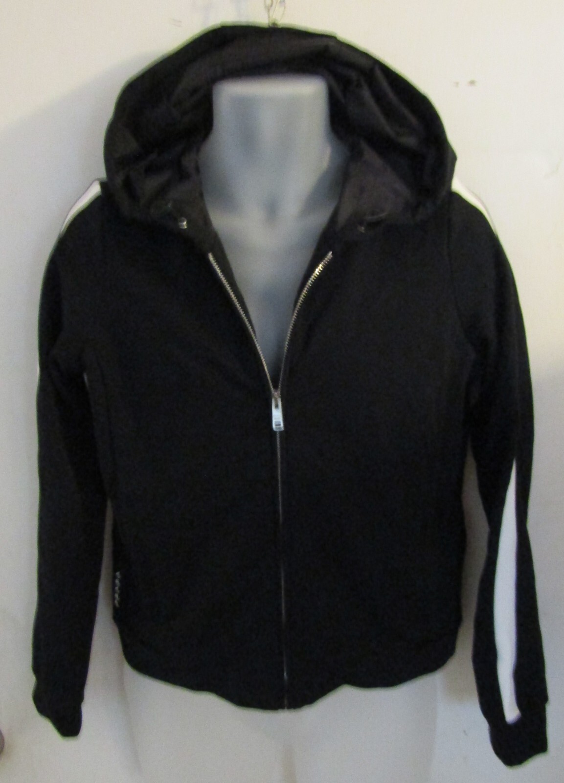 - New Prada Black White Stripe Cotton Jersey Zip Front Felpa Blouson Hood Jacket