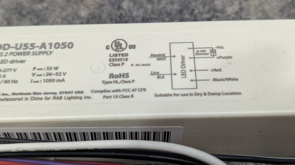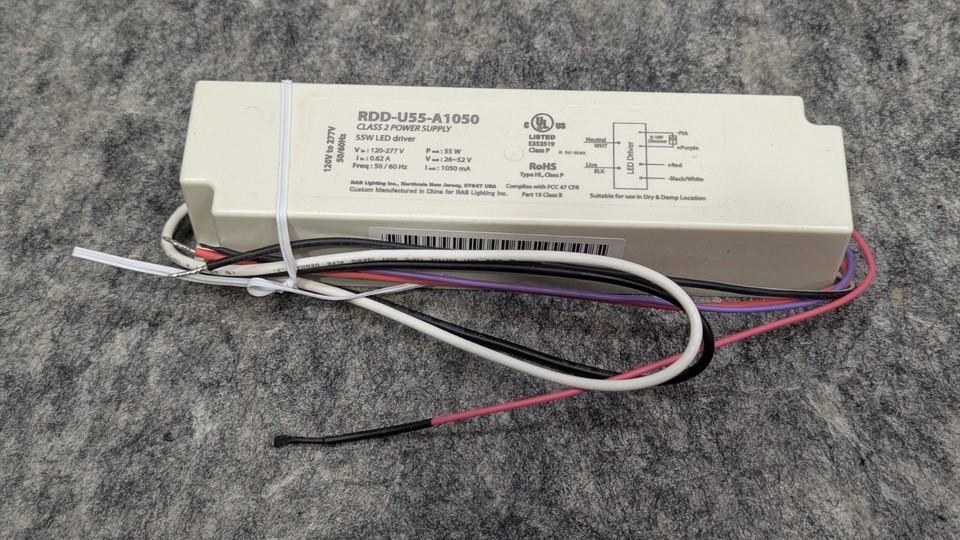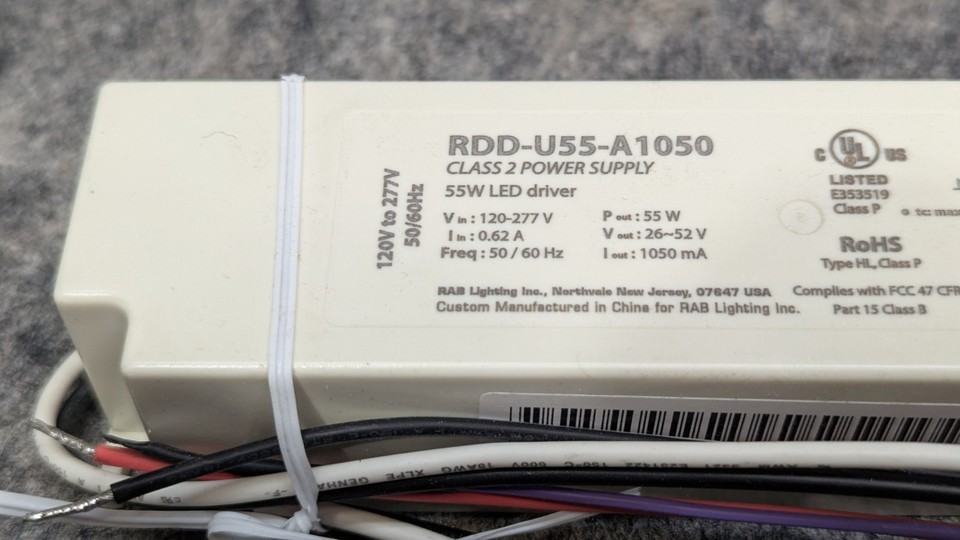 - New RDD-U55-A1050 Constant Current 55W LED Driver 1050mA, 26-52V