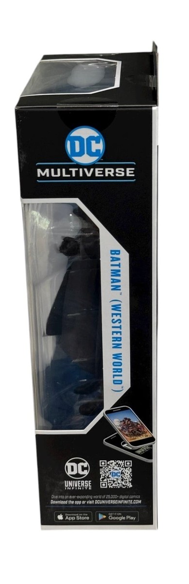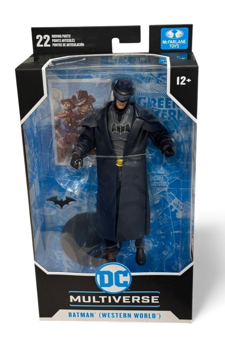 Brand-new, factory-sealed McFarlane DC Multiverse Batman (Western World) 7-inch action figure from the Batman/Superman: Archive of Worlds storyline. Features 22 points of articulation, detailed trench coat sculpt, display stand, and collector art card.