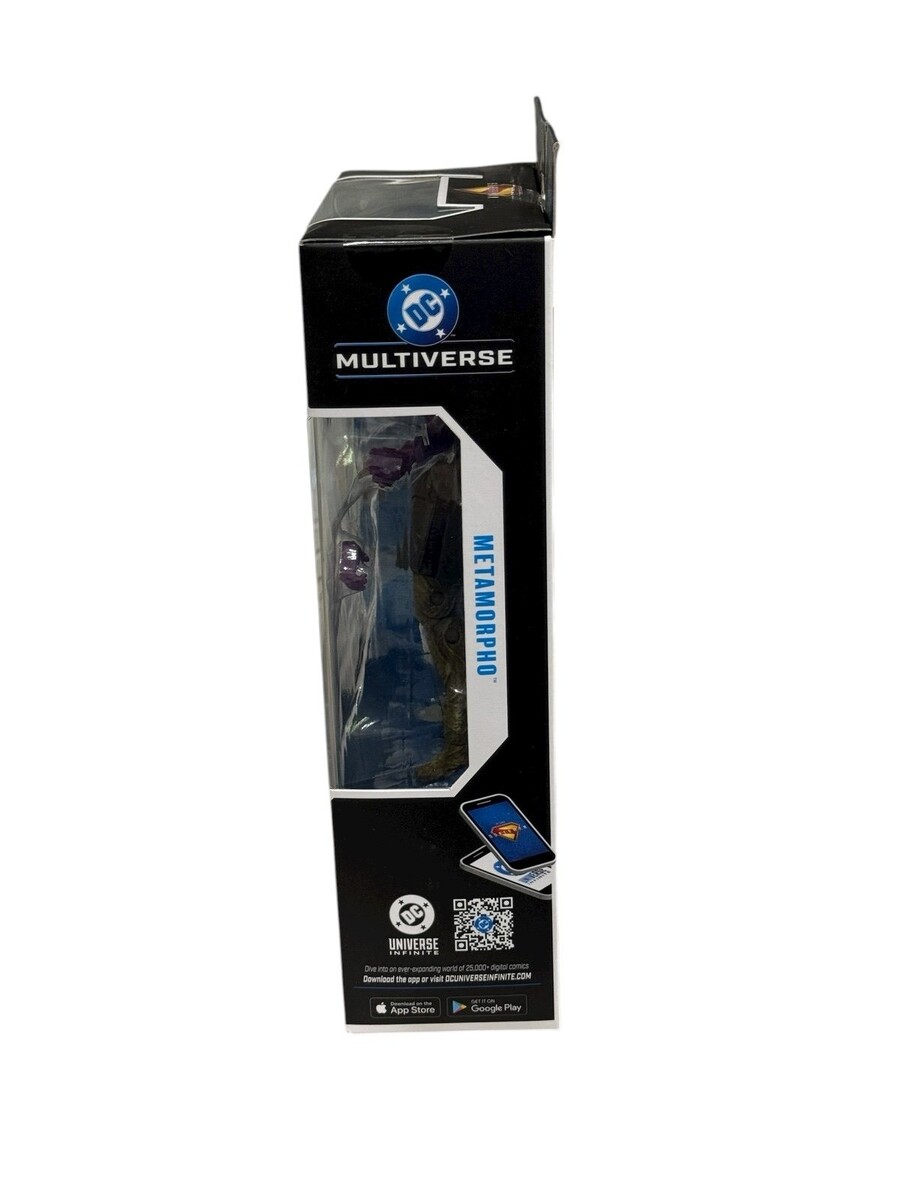 Factory-sealed McFarlane Toys DC Multiverse Metamorpho 7-inch figure from the Superman series. Features 22 points of articulation, detailed multi-element sculpt, alternate hands, display base, and collector art card.