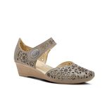 These cute wedges will dress up your warm weather look. The pretty laser cut detailing and textured wedge heel will compliment your favorite spring fashions.