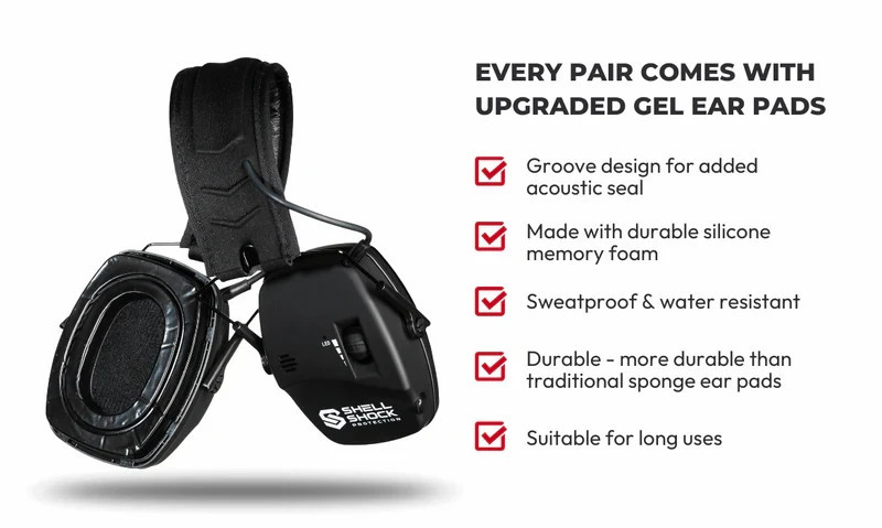 ? UPGRADED GEL CUPS: Our EXO Pro Electronic earmuffs come upgraded with PureSeal gel cushions that are much more comfortable and allow for a better seal against ears and glasses.
