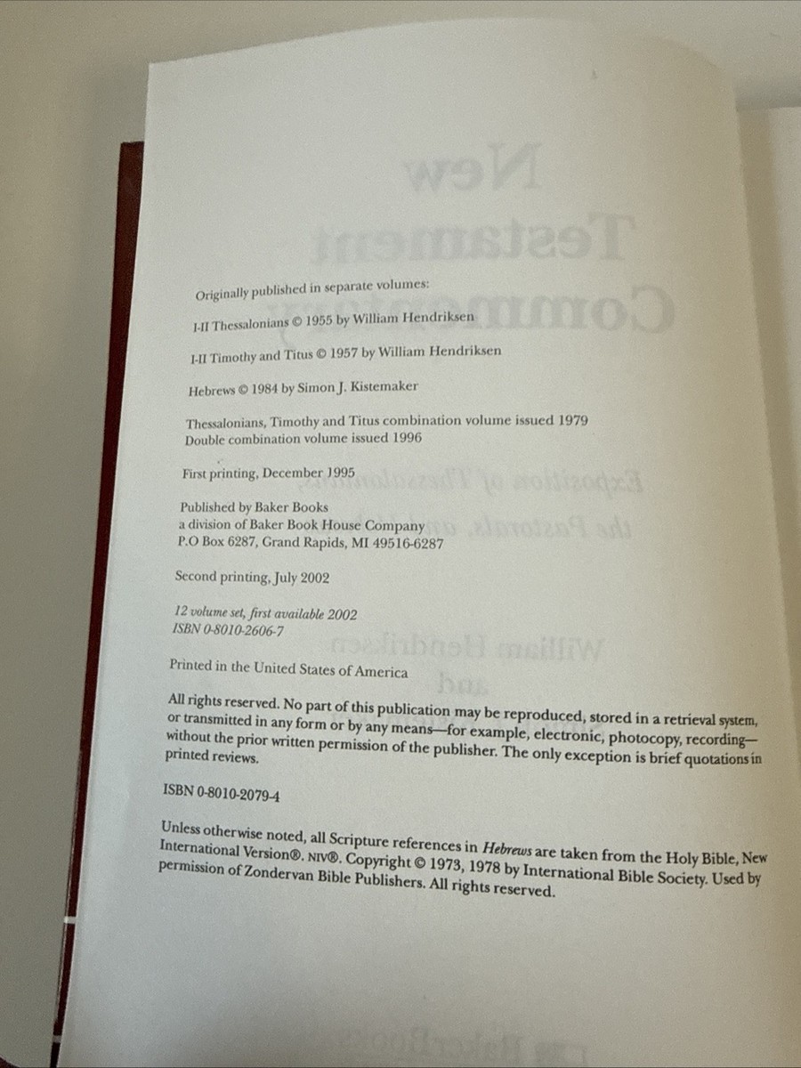 The "Exposition of Thessalonians, the Pastorals, and Hebrews" is a comprehensive commentary on three books of the New Testament, authored by William Hendriksen and Simon J. Kistemaker. This textbook, published by Baker Books in 2002, delves into the theological significance and interpretations of these biblical texts. With a hardcover format and language in English, this commentary series spans over 1,100 pages, making it a valuable resource for academic and personal study of the New Testament.