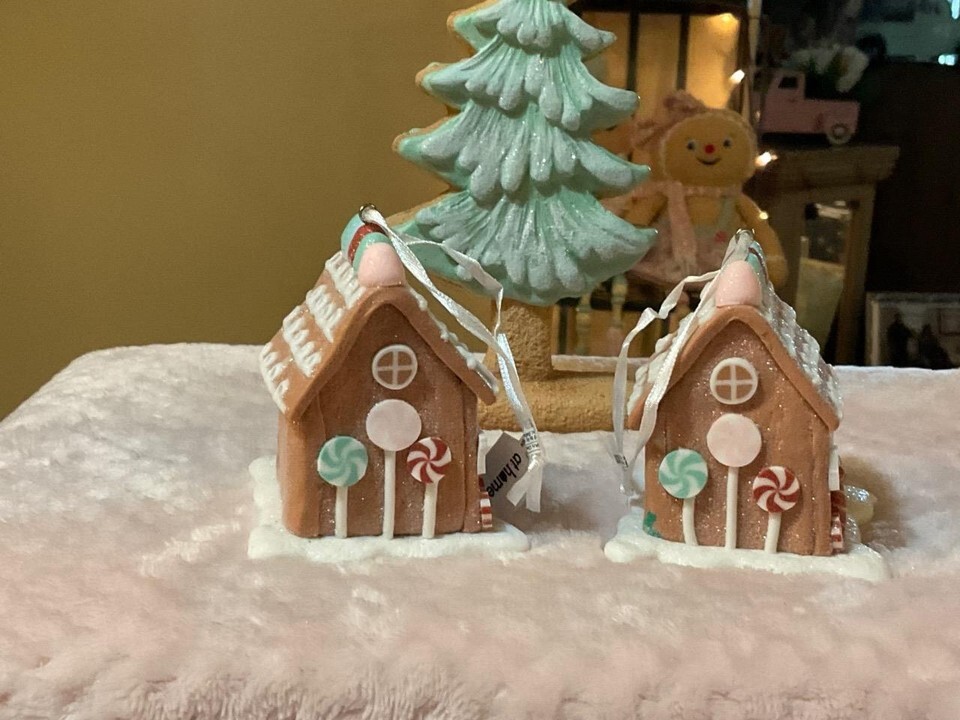 - NEW TINY PASTEL GINGERBREAD HOUSE ORNAMENT WITH GUMDROPS & PEPPERMINTS. SO CUTE