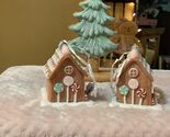 New! Adorable mini gingerbread house ornament in sweet pastel colors. Detailed with tiny windows and peppermint candies and gumdrops on roof. The ornament measures 3"x3" in total, but the house itself is about 2x2". Bid is for 1 gingerbread house only. Photo is to show front and back.