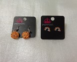 New, never worn. The cookie earrings have hooks and the rainbow earrings have posts.