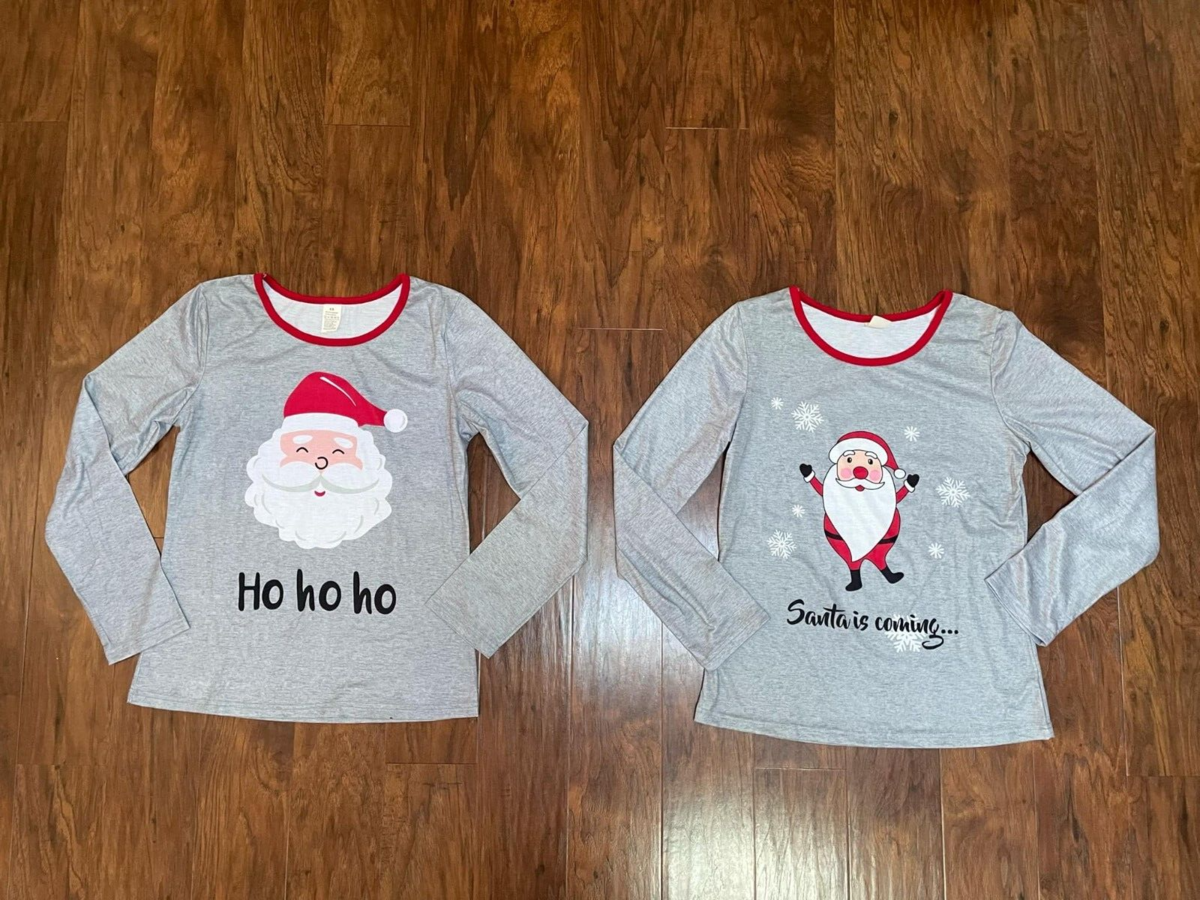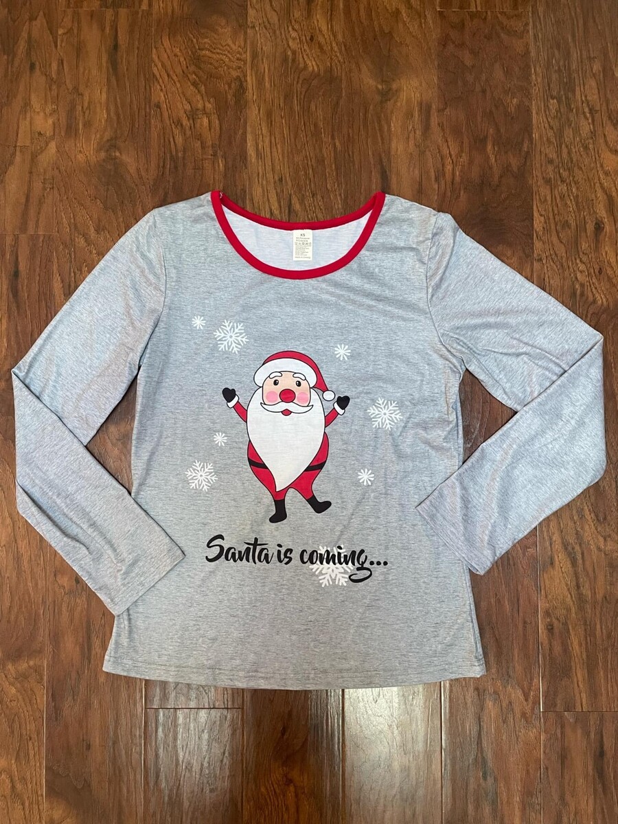 new Women's Long Sleeve PAJAMA SHIRT TOP sz XS Christmas Santa Matching PJ gray