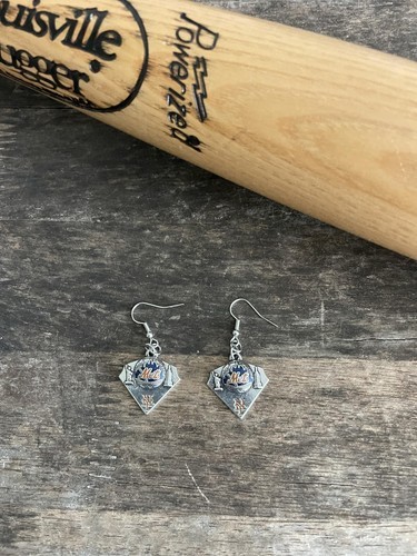 - NEW WOMENS NEW YORK METS BASEBALL DIAMOND SILVER EARRINGS | DANGLE DROP MLB