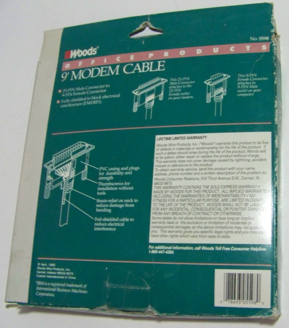 - NEW!! WOODS 9' FT RS232 9-Pin DB9 Female to 25-Pin DB25 Male MODEM CABLE!!