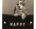 Original photograph of a cocker spaniel dog with eyeglasses and a New years hat