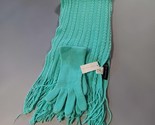 New York & Co Women's Solid Teal Fringe Trim Scarf & Glove Set 100% Acrylic NWT