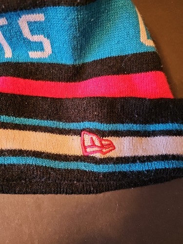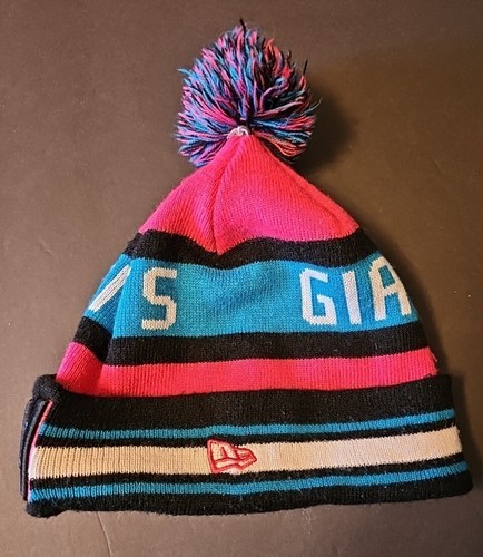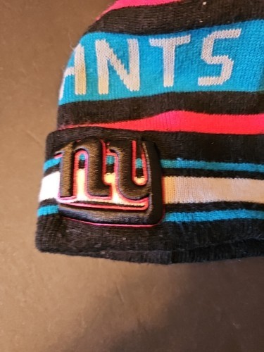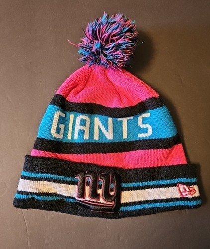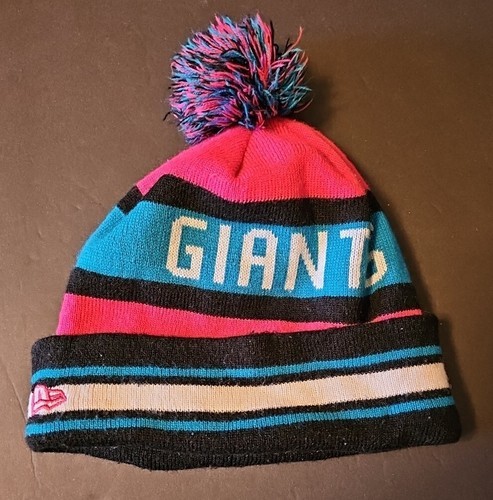 Up for Sale is: New York Giants New Era Pink Blue Black Stripe Cuffed Pom Hat Cap Beanie Womens