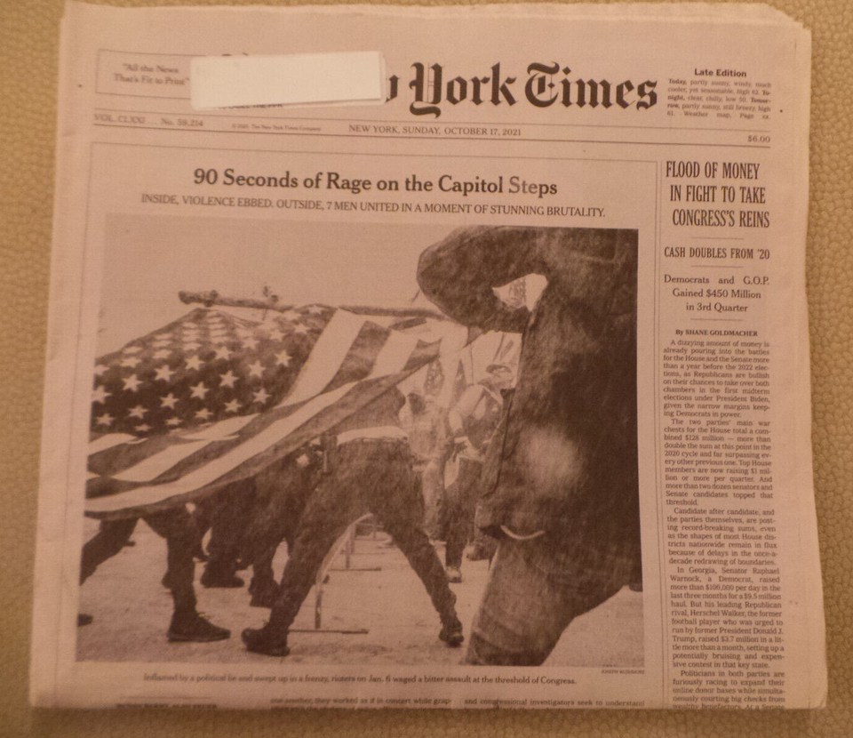 - New York Times Newspaper 90 Seconds of Rage on the Capital October 17, 2021 NF