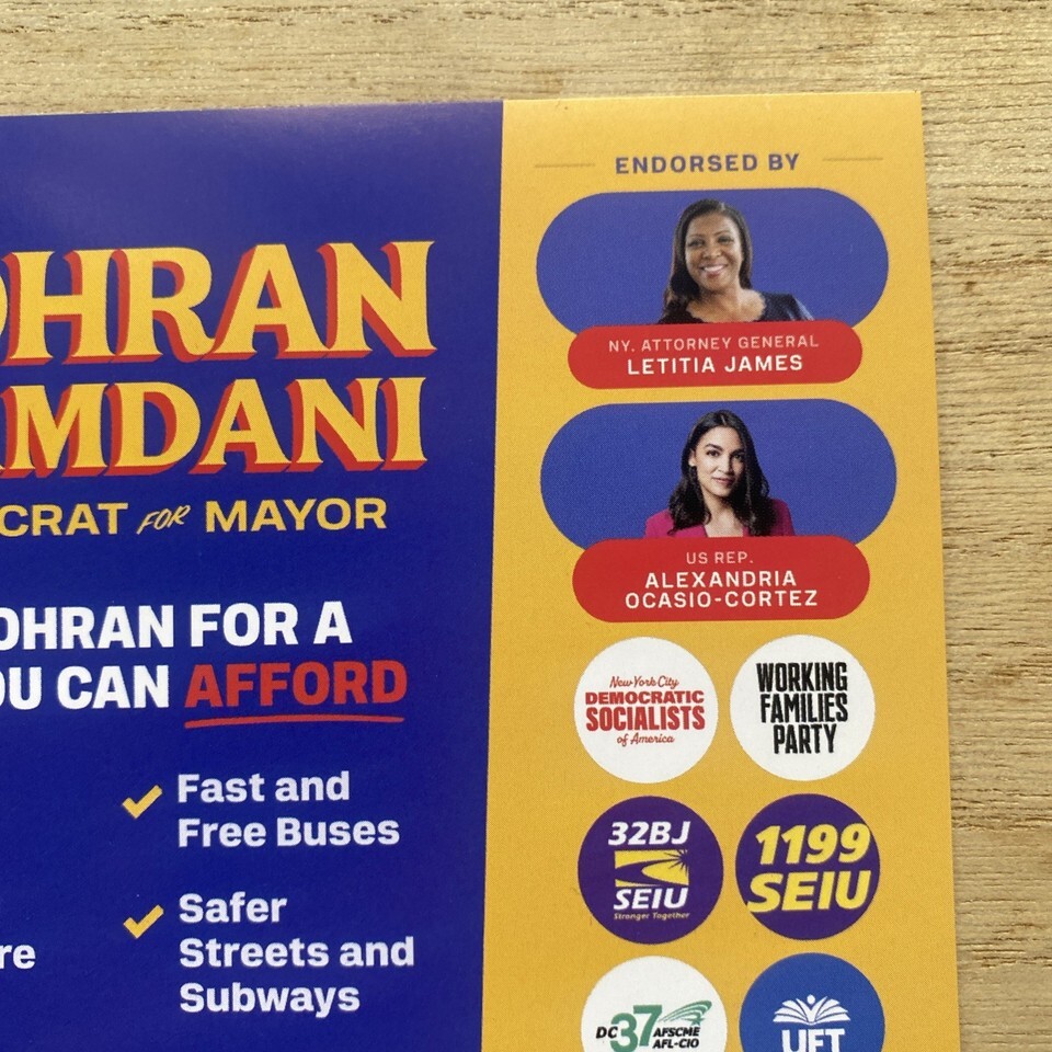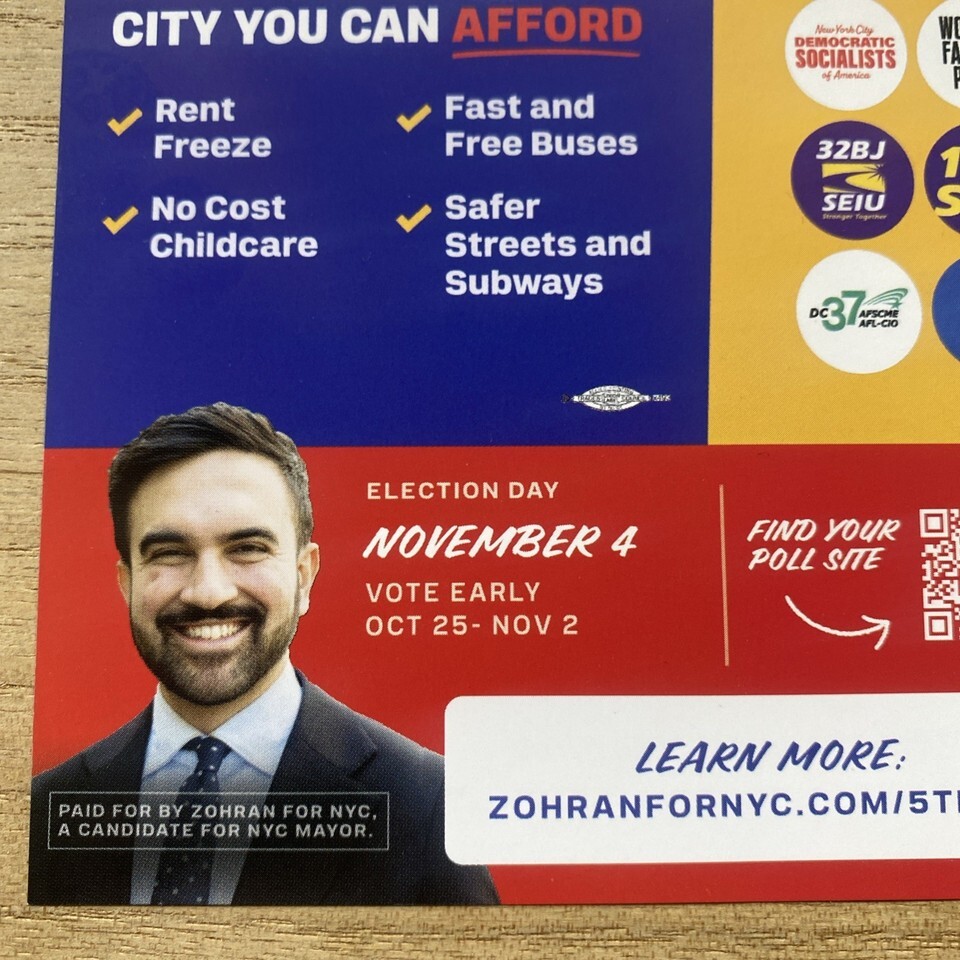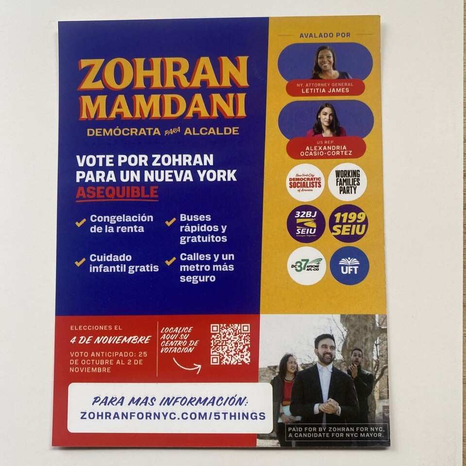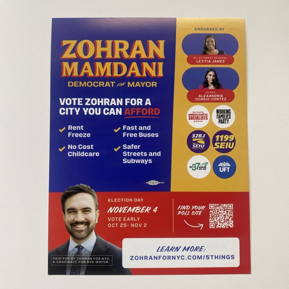 - New York mayoral Small flyer Zohran Mamdani Democrat For Mayor NYC