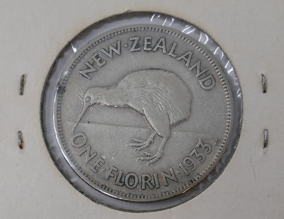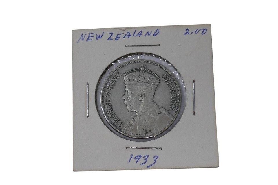 - New Zealand 1933 George V One 1 Florin Silver Coin