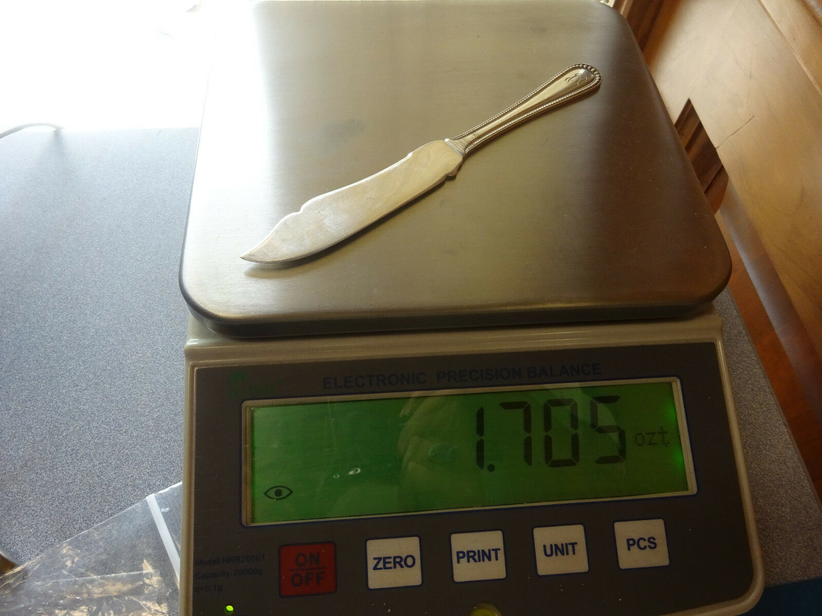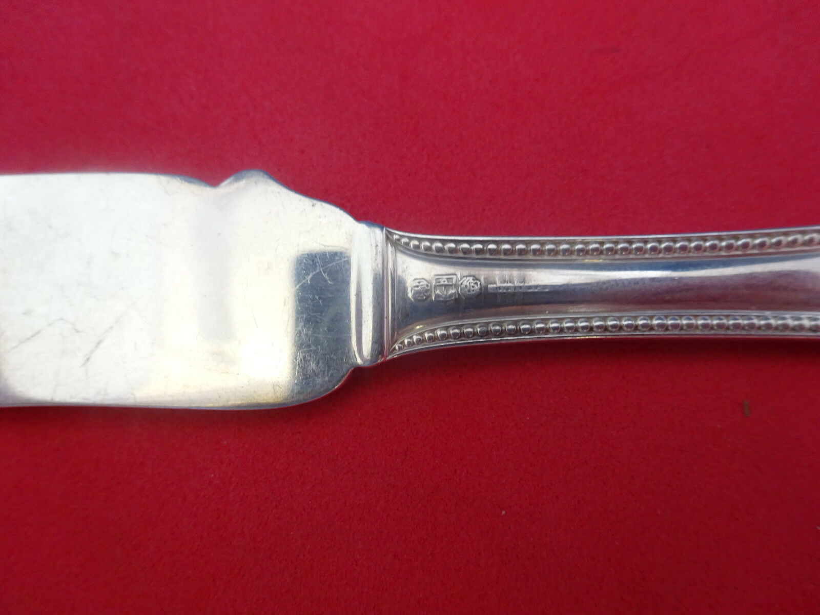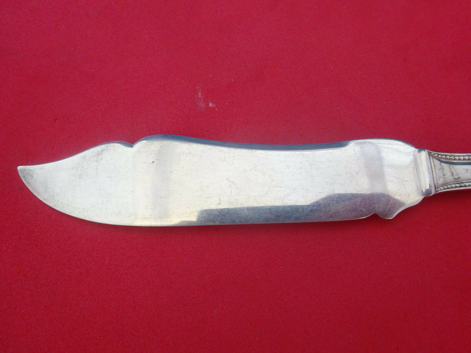 Sterling silver flat handle FISH KNIFE ALL STERLING WITH NOTCH 7 3/4" in the pattern NEWCASTLE BY GORHAM. It is monogrammed (monos vary) and is in excellent condition.